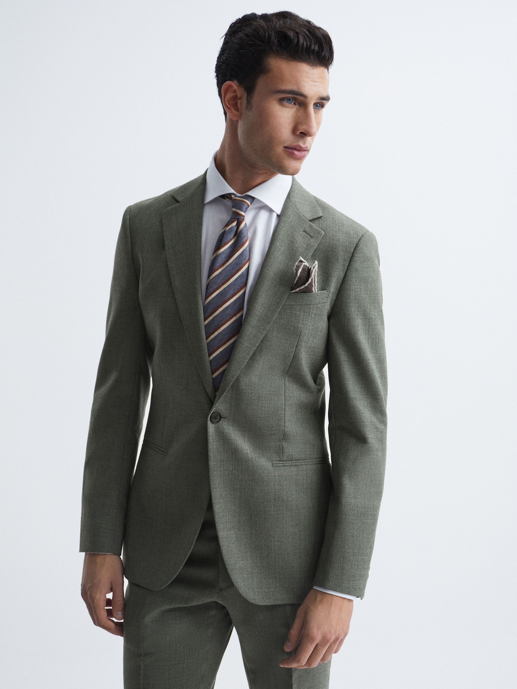 Slim-Fit Single-Breasted Wool-Blend Textured Blazer in Sage Green