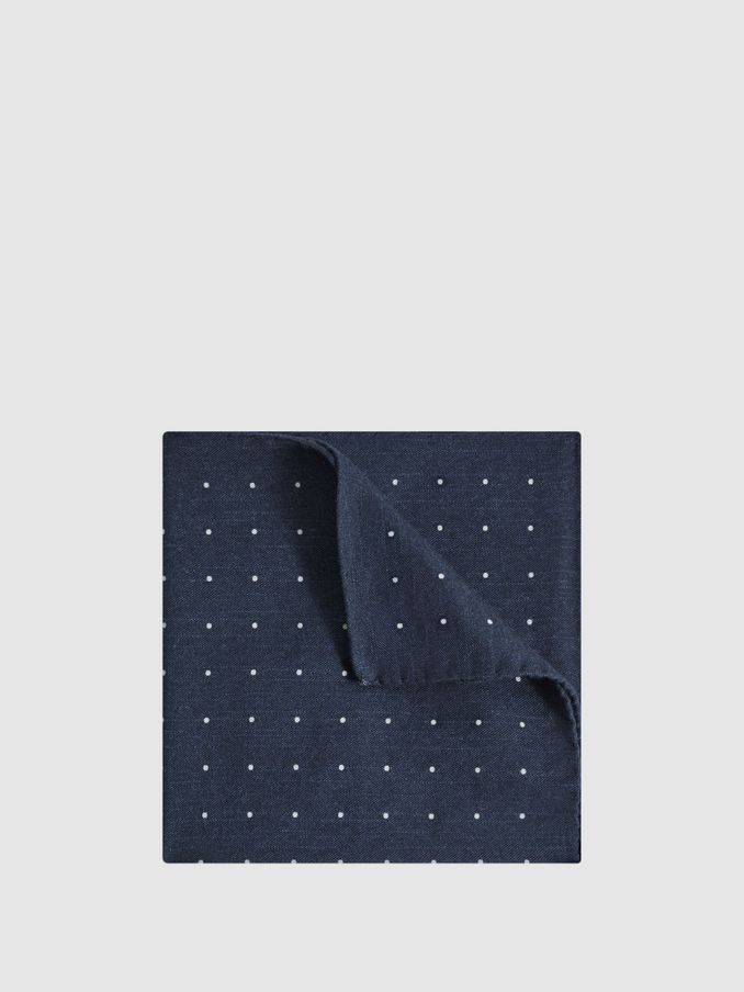 Cotton-Wool Polka Dot Pocket Square in Navy