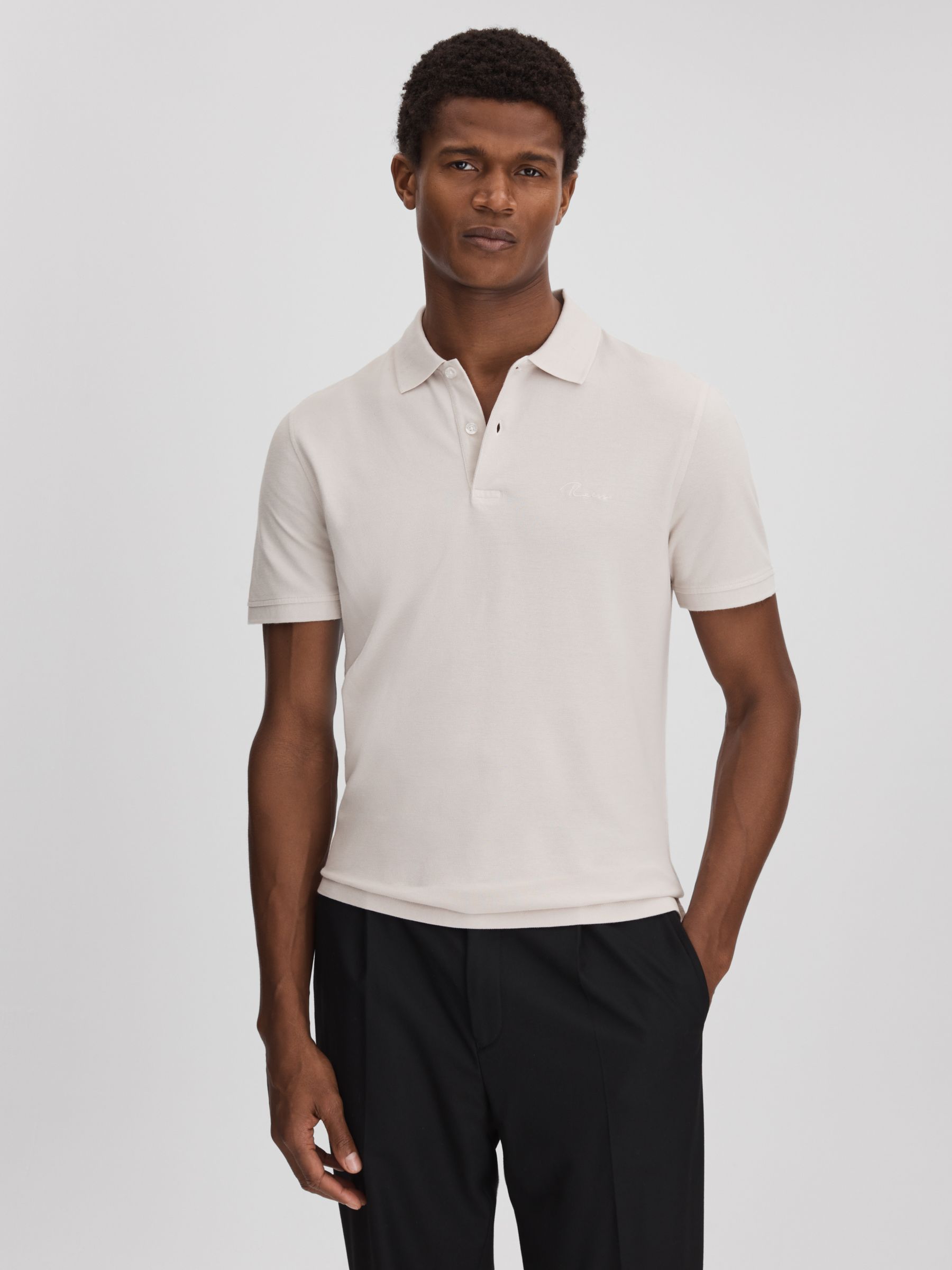Slim Fit Garment Dyed Embroidered Polo Shirt in Ice Grey
