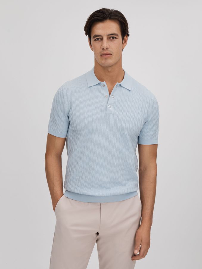 Textured Modal Blend Polo Shirt in Soft Blue
