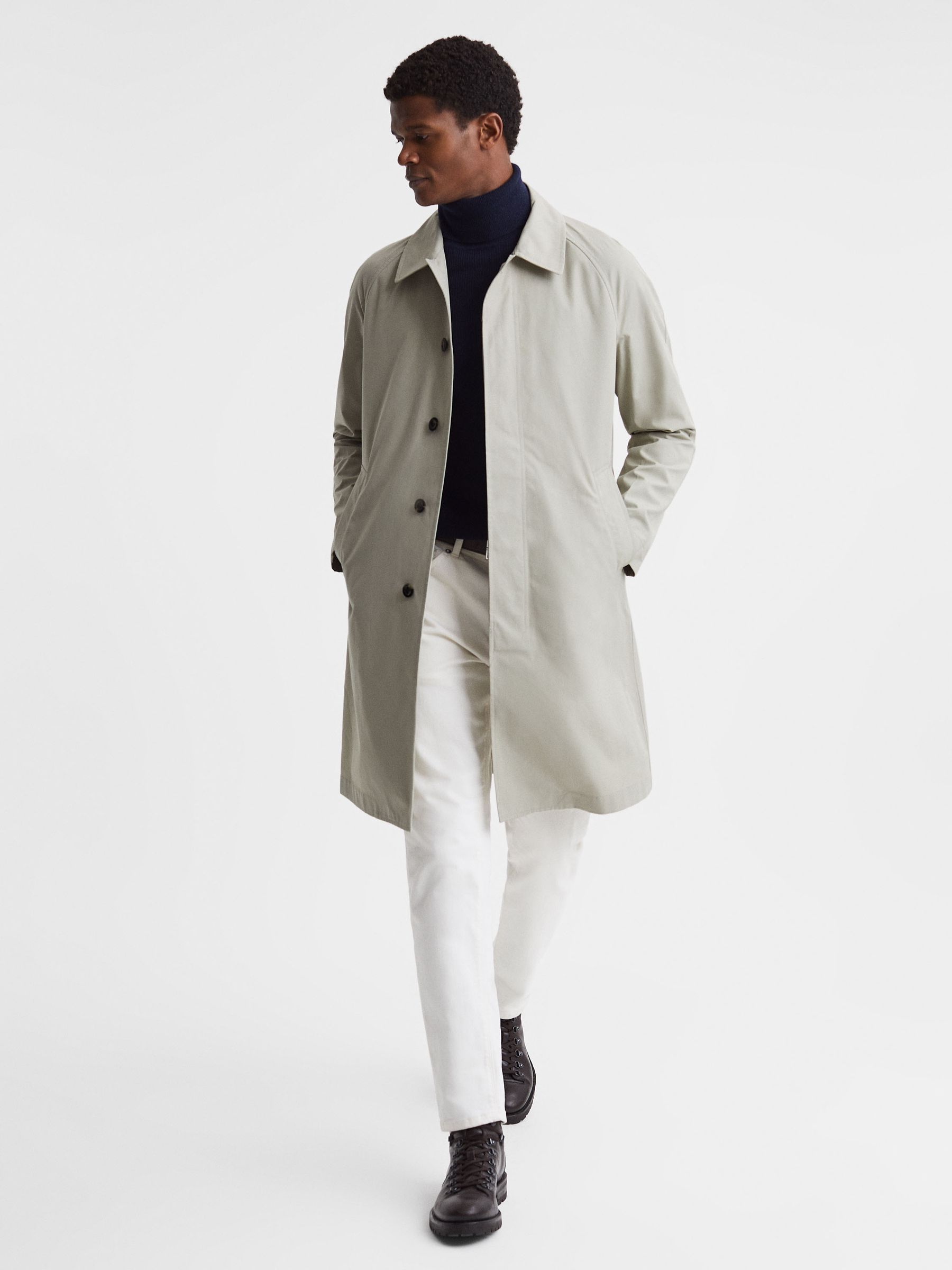 Hybrid Removable Funnel Neck Overcoat in Stone