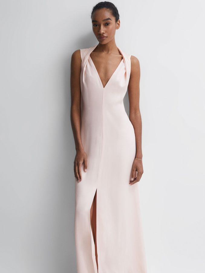 Metallic Stripe Bodycon Midi Dress in Black/Bronze