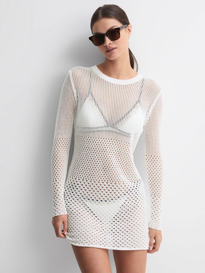 Crochet Mini Dress in Cream