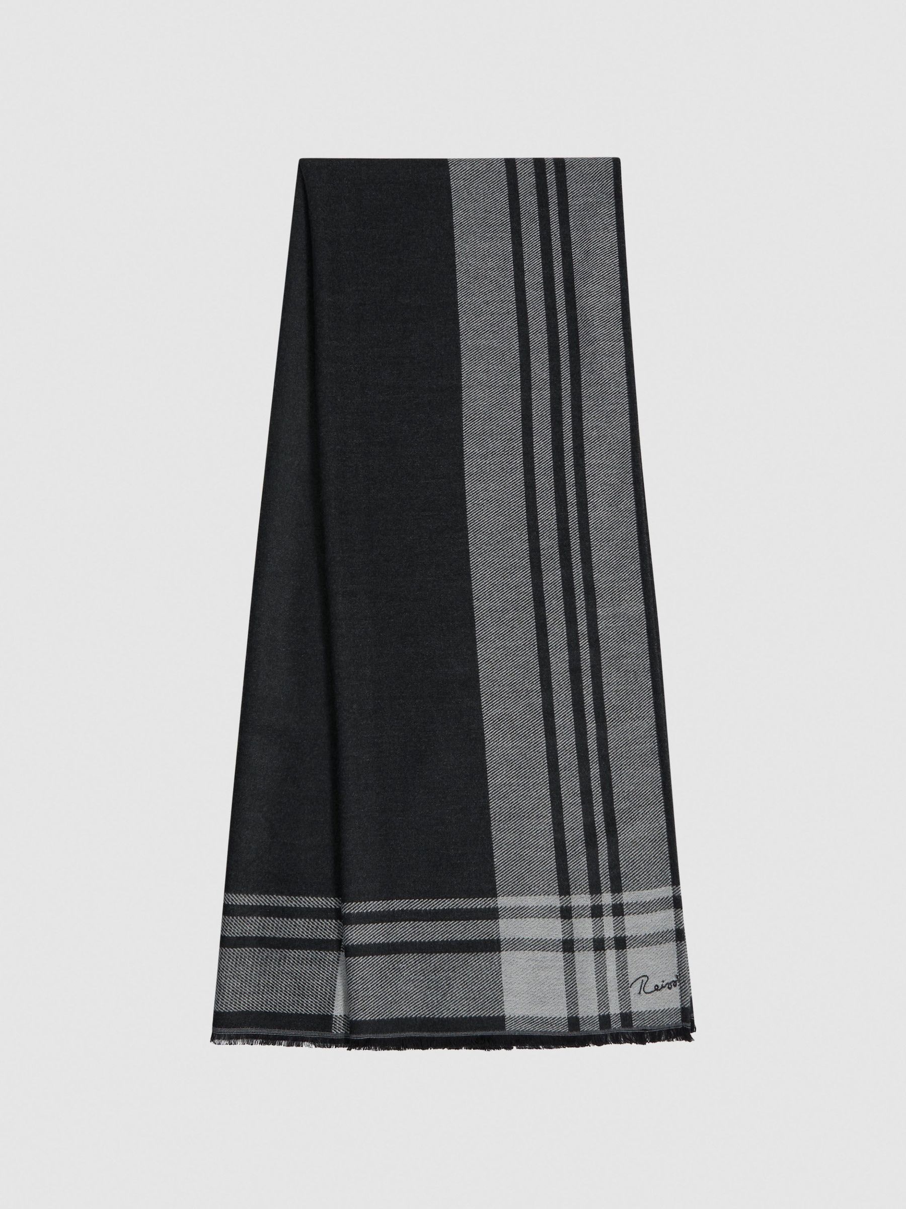 Checked Embroidered Scarf in Black/White
