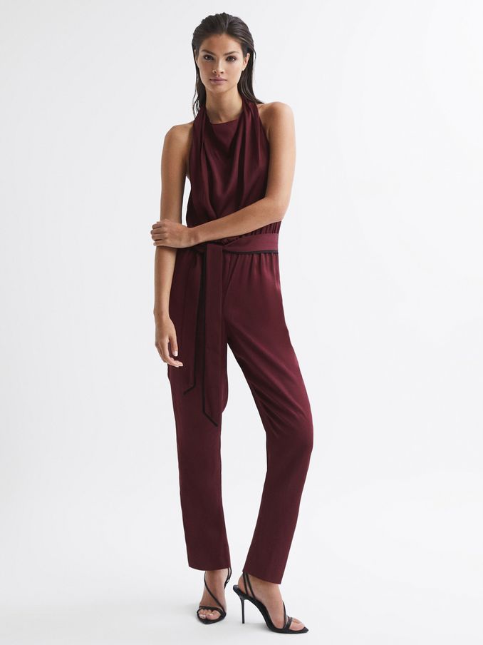 Bow-Back Jumpsuit in Burgundy Red