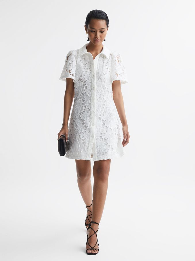 Leo Lin Lace Shirt Mini Dress in Snow White