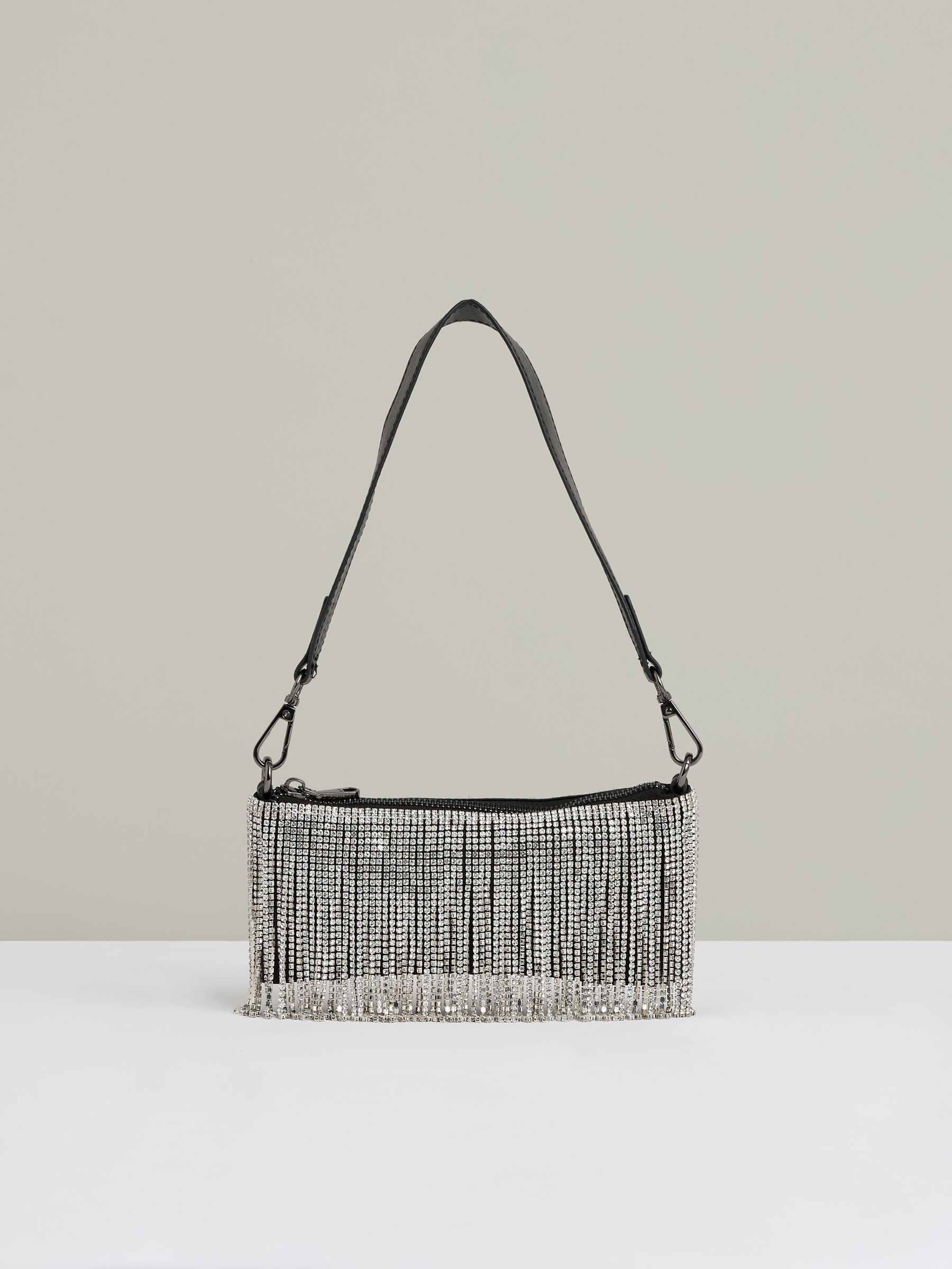 Beaded Removable Strap Shoulder Bag in Silver