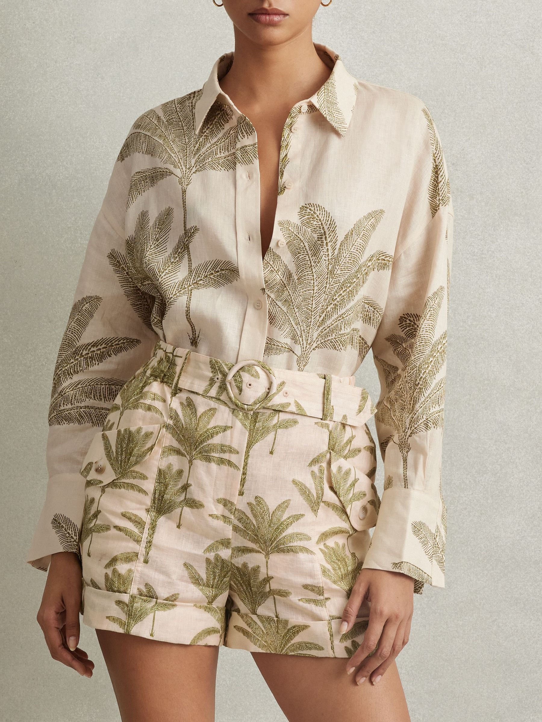 Palm Print Belted Shorts in Neutral