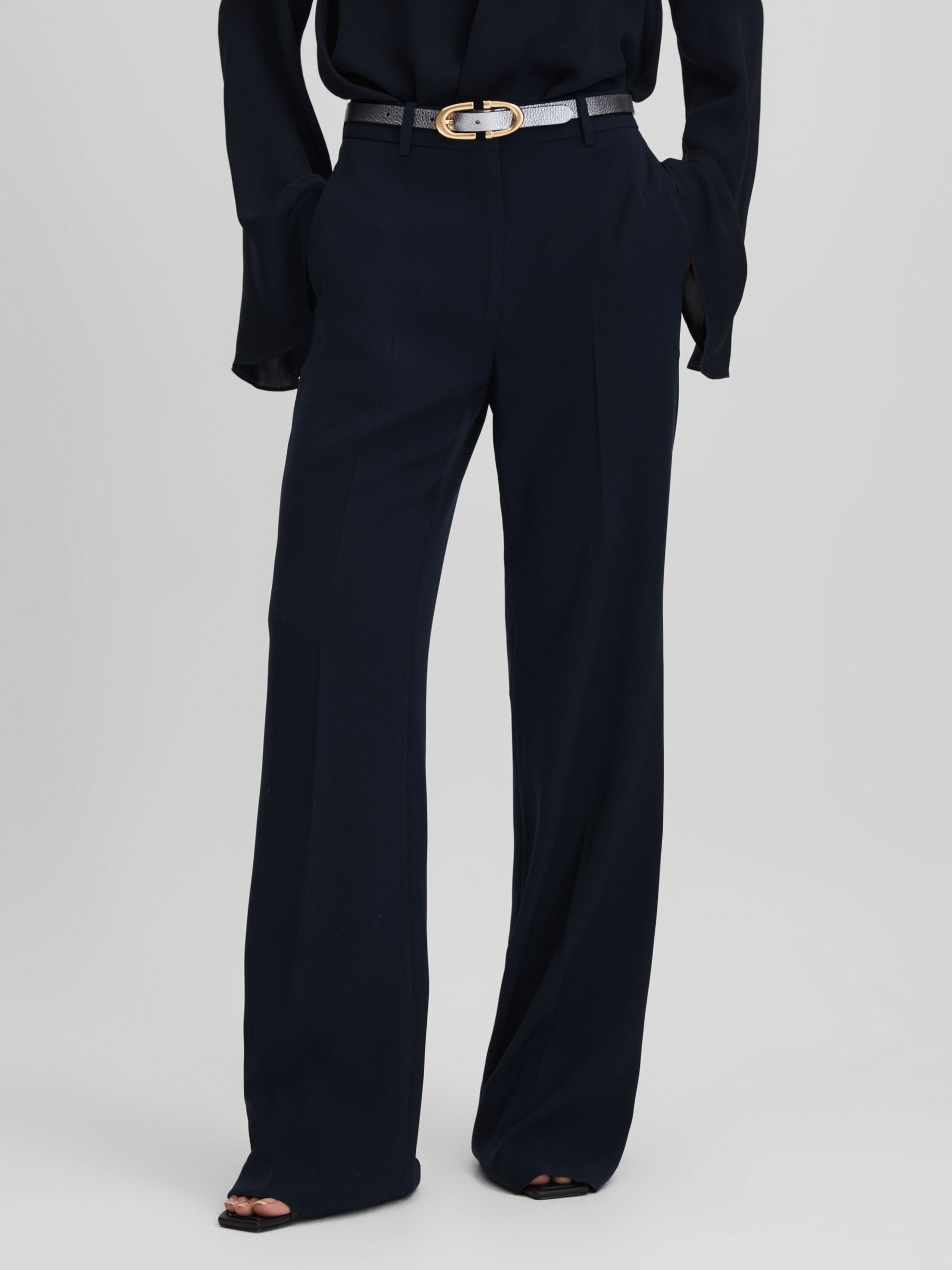 Wide Leg Suit Trousers in Navy