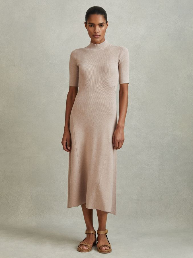 Velvet Draped-Neck Ruched Midi Dress in Black