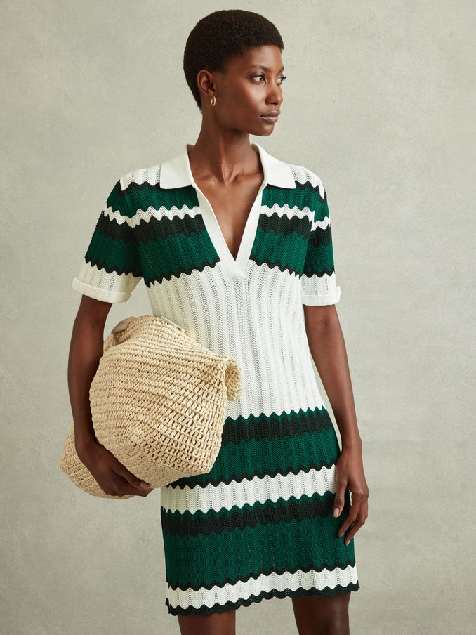 Knitted Tunic Dress in Green/White