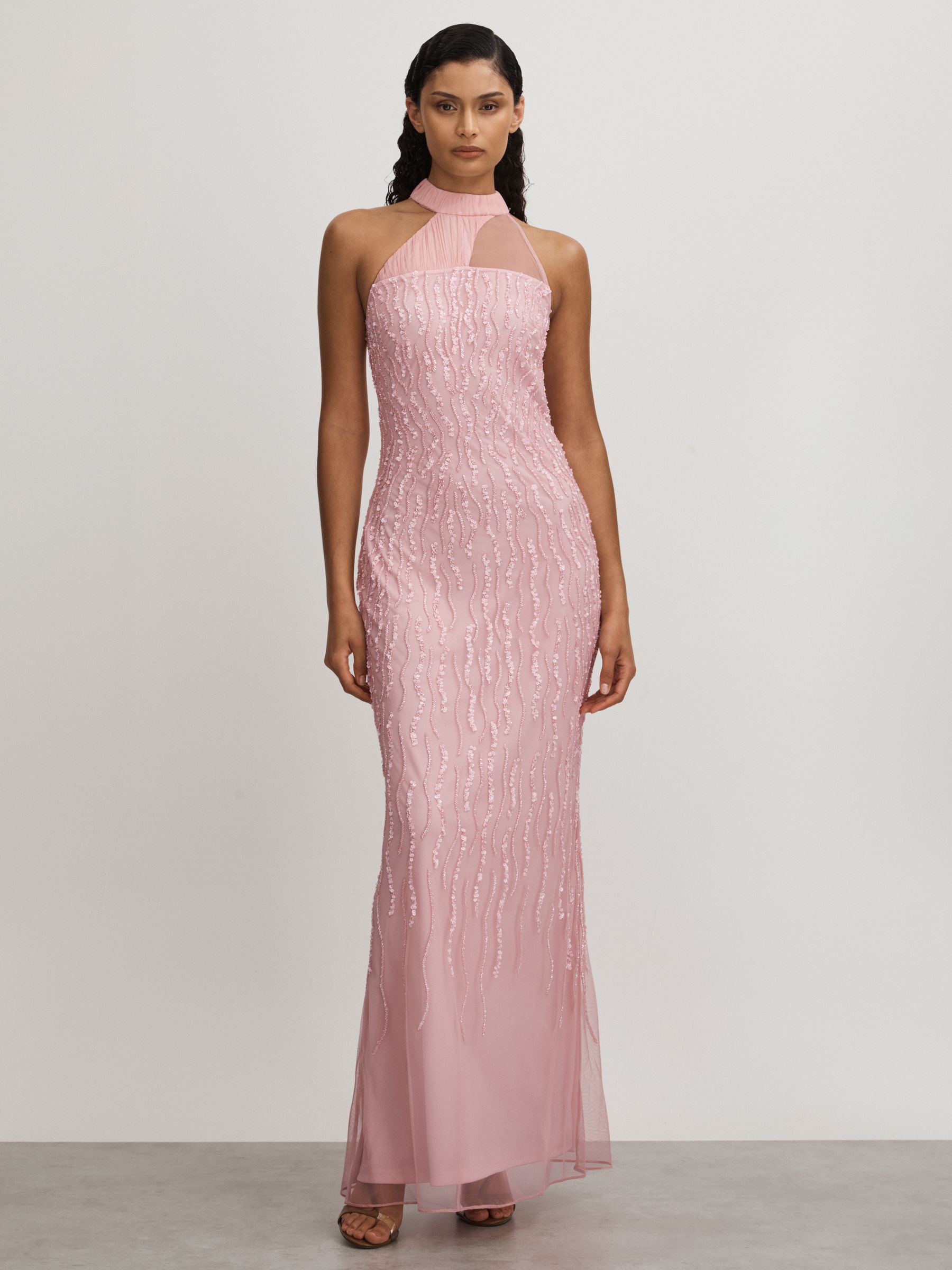 Holly Pink Raishma Pink Embellished Halter Neck Maxi Dress