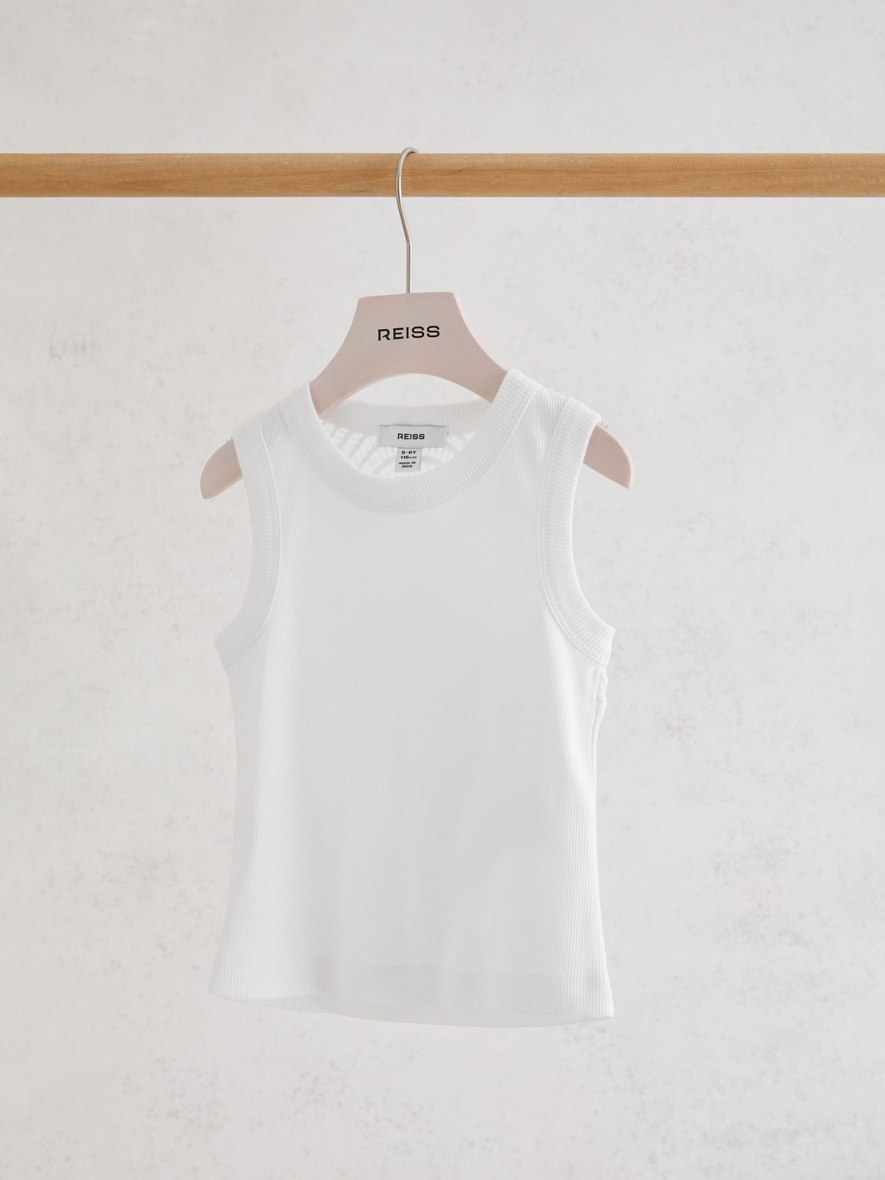 13-14 yrs 3 Pack Stretch-Cotton Ribbed Vests in White/Pink/Navy