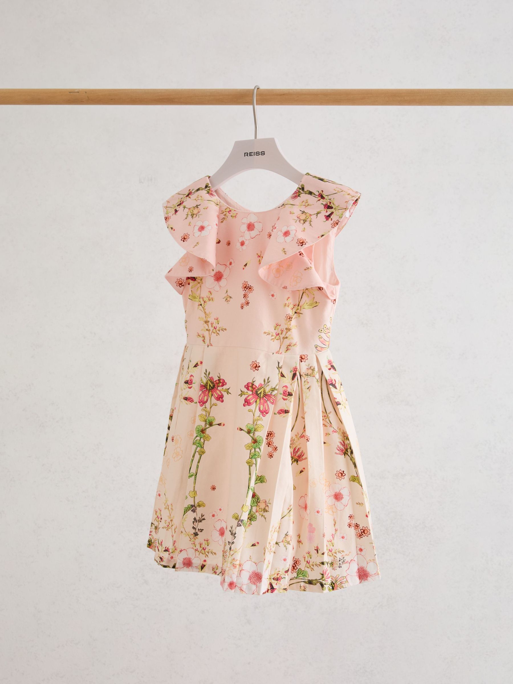 13-14 yrs Cotton Floral-Print Frill-Sleeve Dress in Pink Print