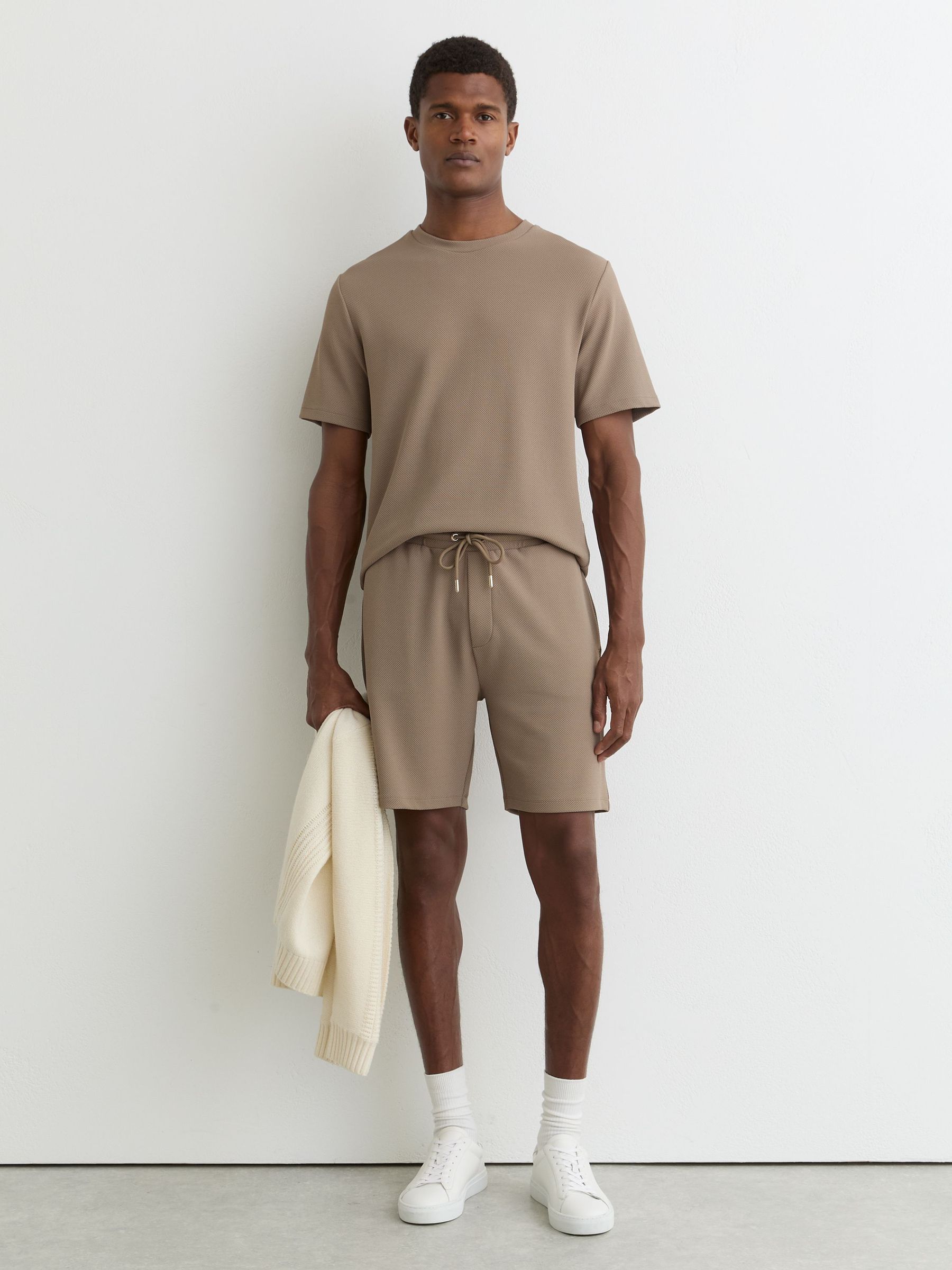 Textured Drawstring Shorts in Camel Brown
