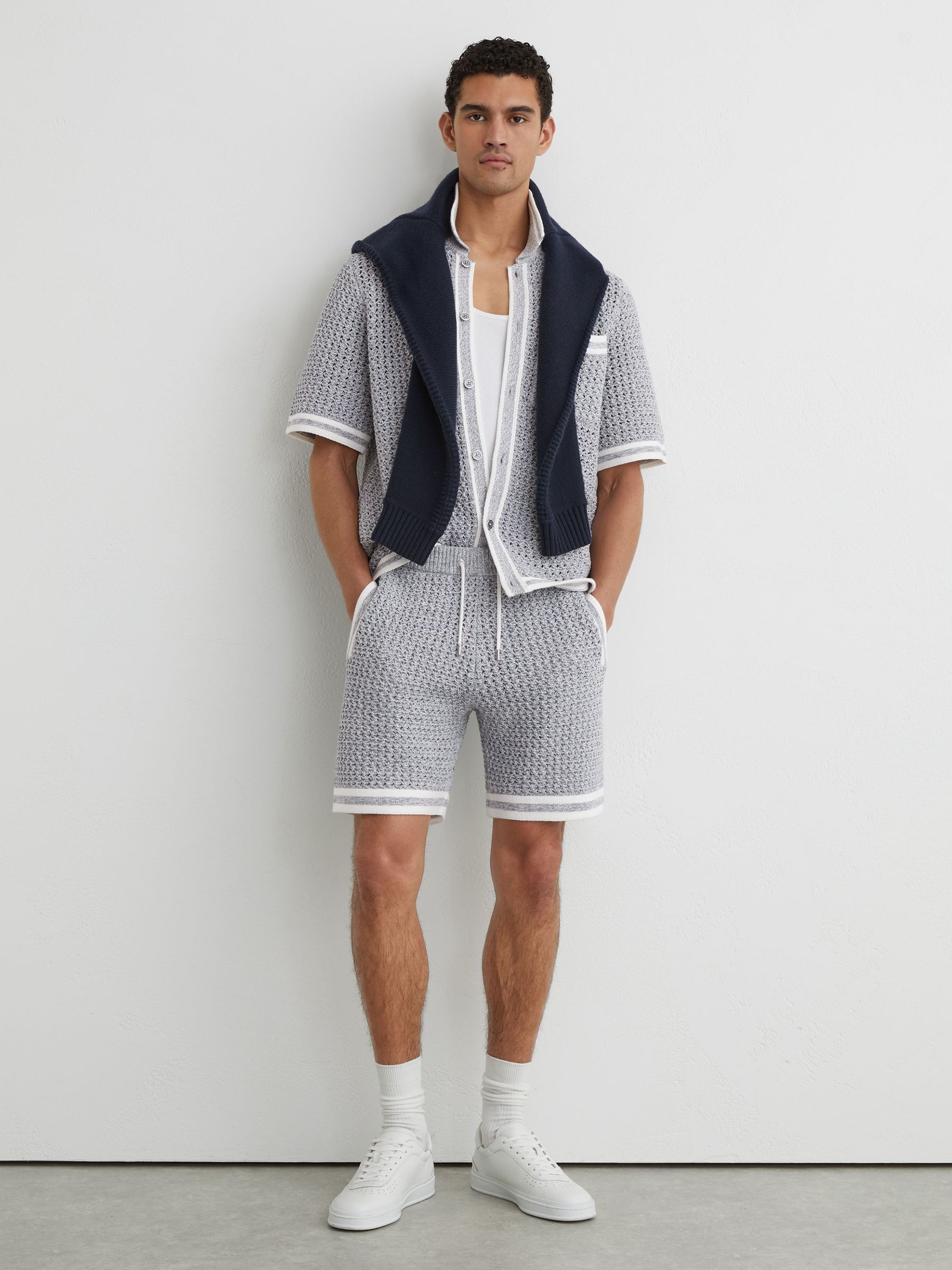 Cotton-Blend Side-Tape Crochet Shorts in Black