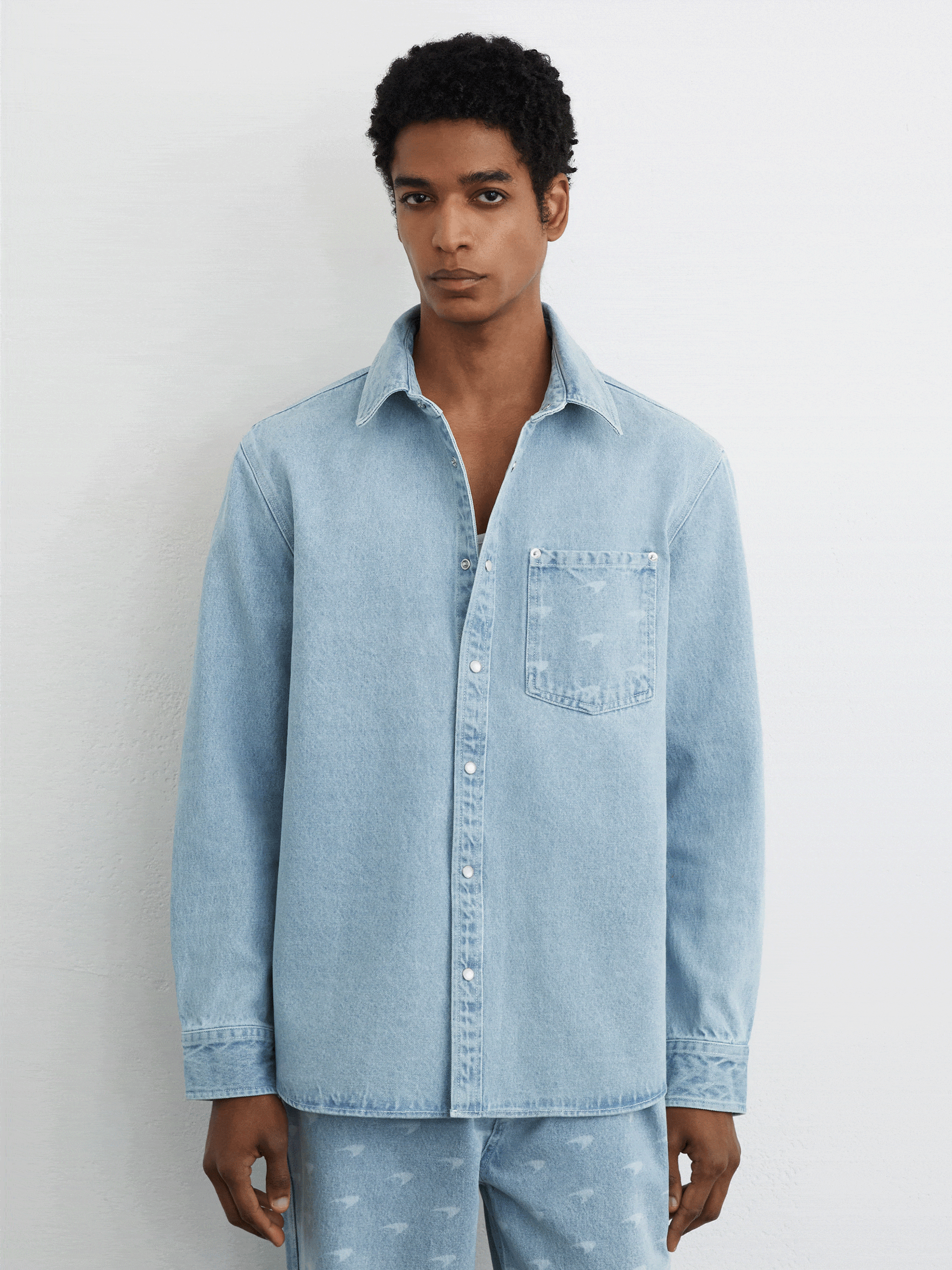 McLaren Racing Logo-Pocket Denim Shirt in Soft Blue