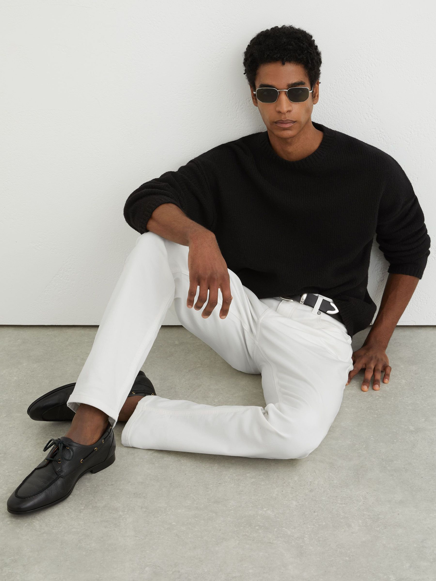Soft-Stretch Straight-Leg Jeans in White