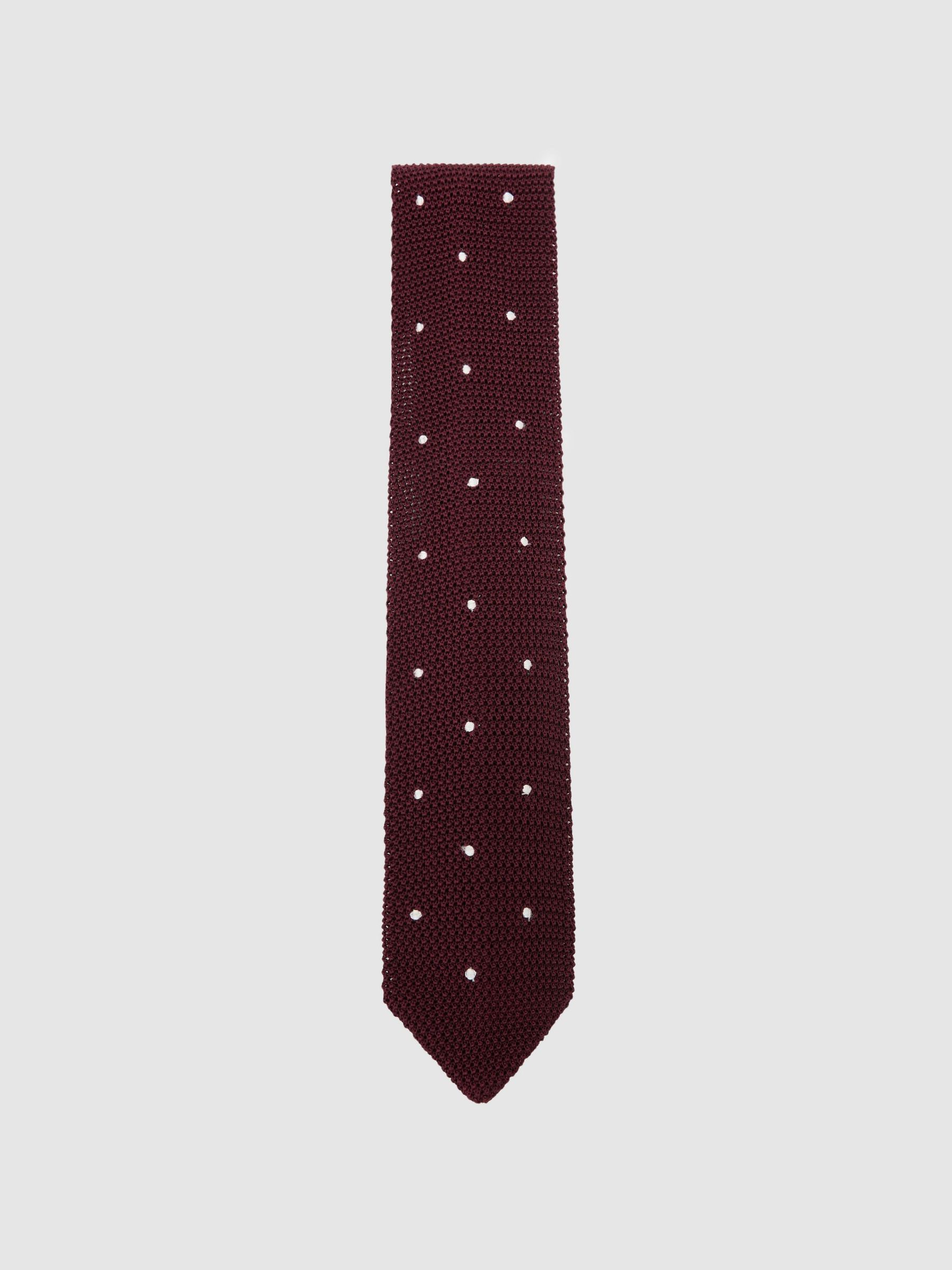 Silk Knitted Pin-Dot Tie in Burgundy