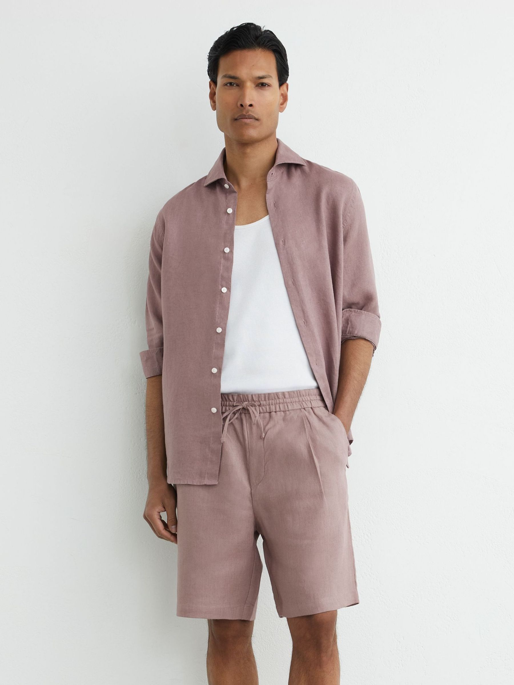 Linen Drawstring Shorts in Lavender Pink