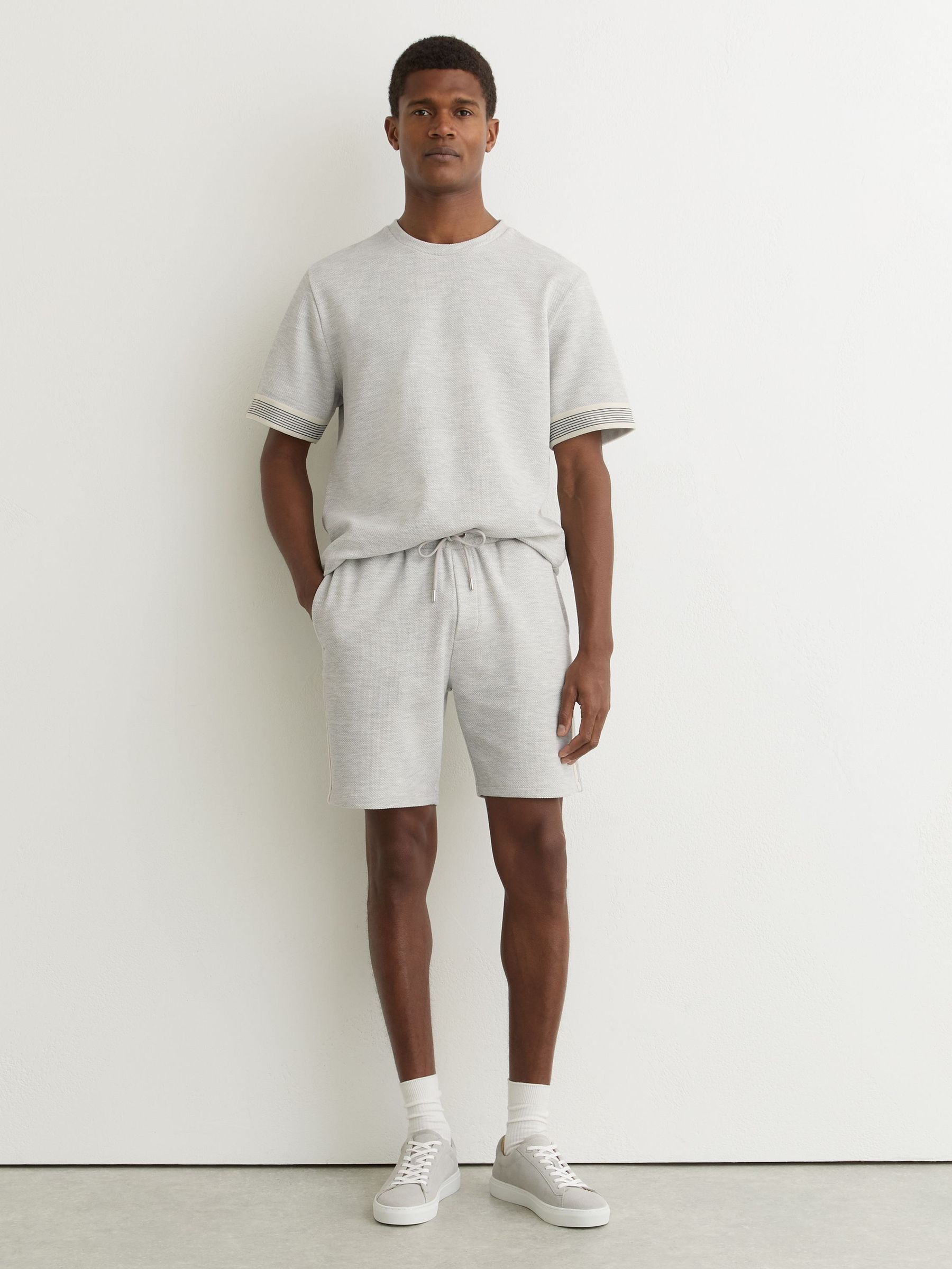 Textured Side-Stripe Drawstring Shorts in Grey Melange