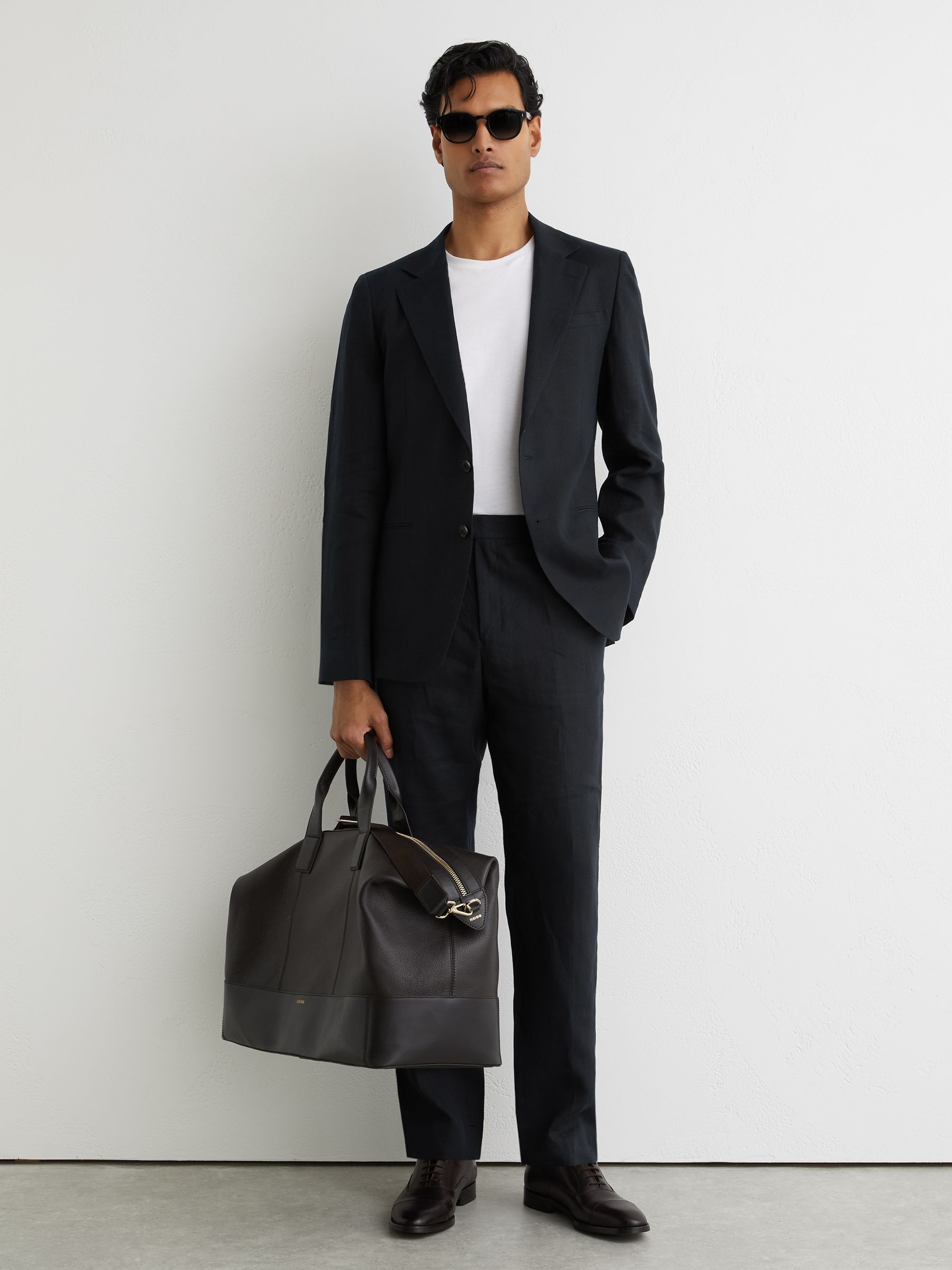 Tailored-Fit Linen Trousers in Navy
