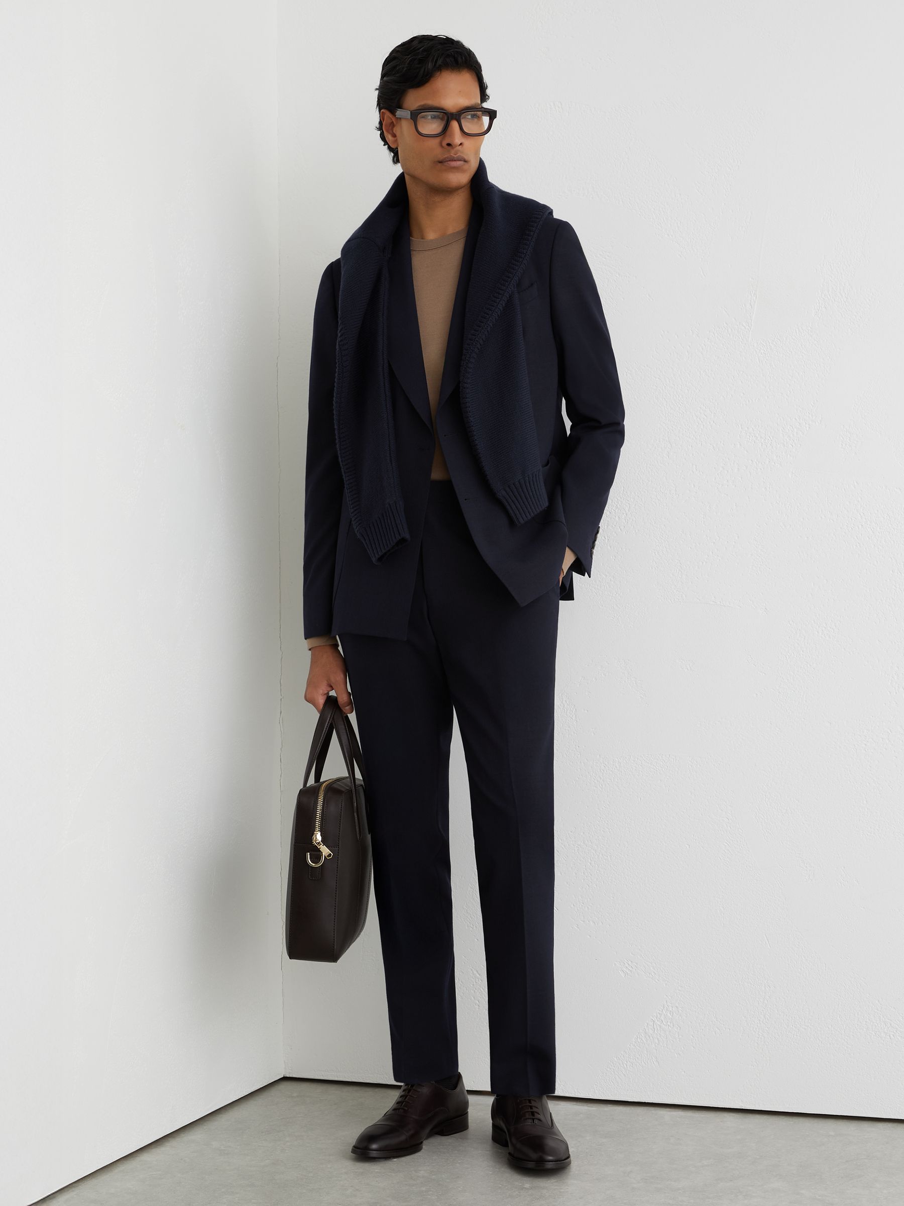 Wool Textured Tailored-Fit Trousers in Airforce Blue