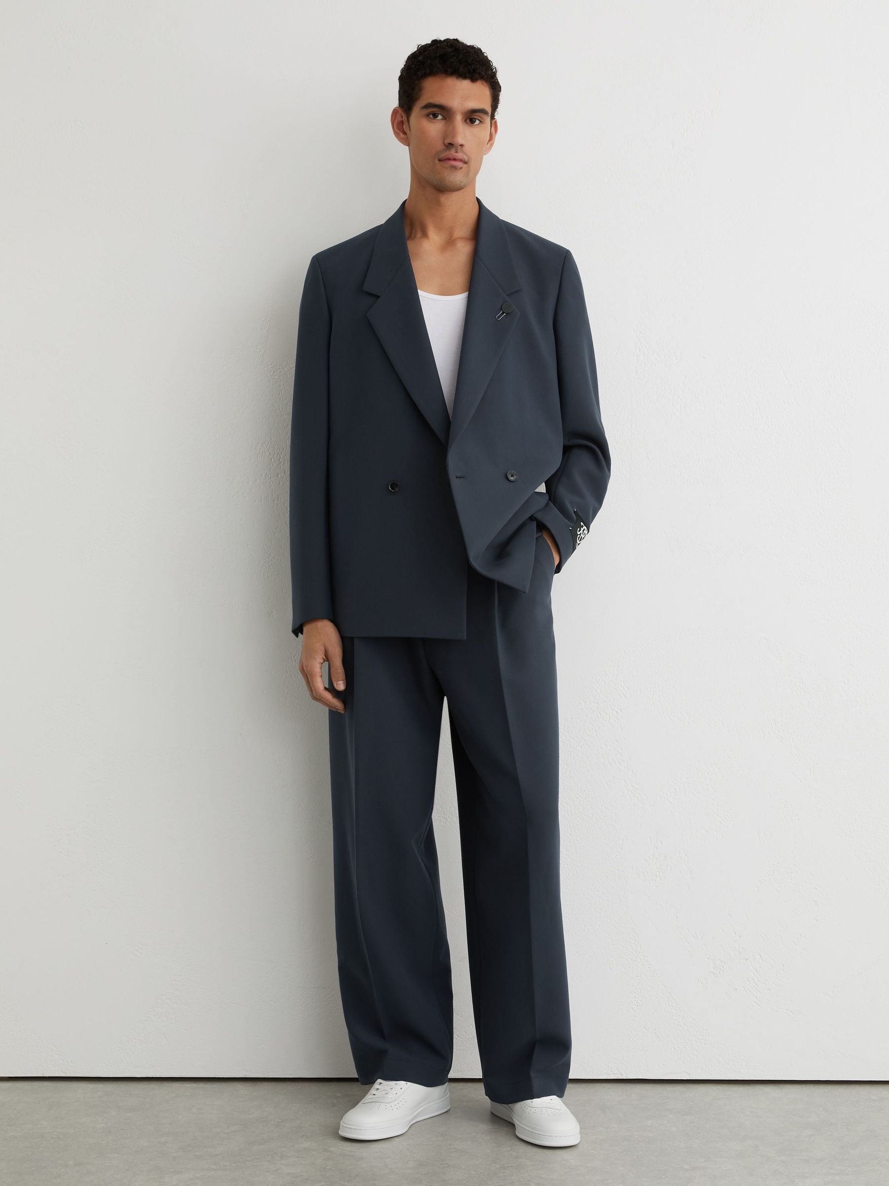 Monogram Relaxed-Fit Belted Trousers in Airforce Blue