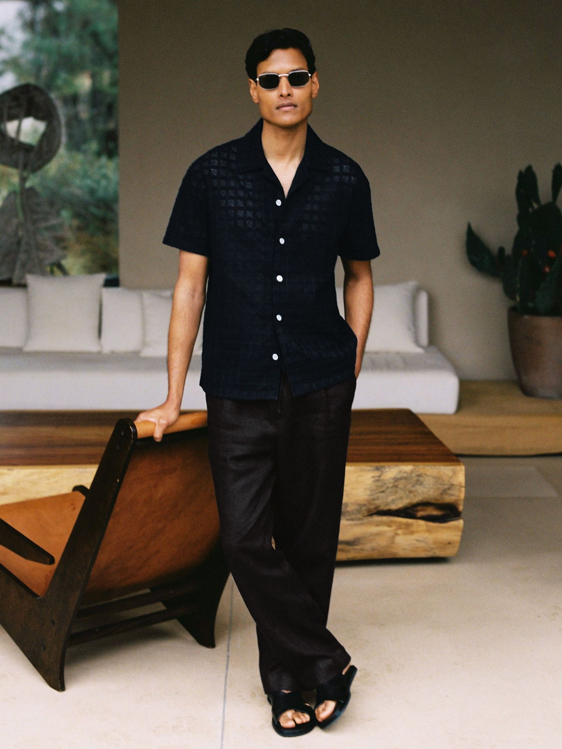 Linen Cutaway-Collar Regular-Fit Shirt in Black