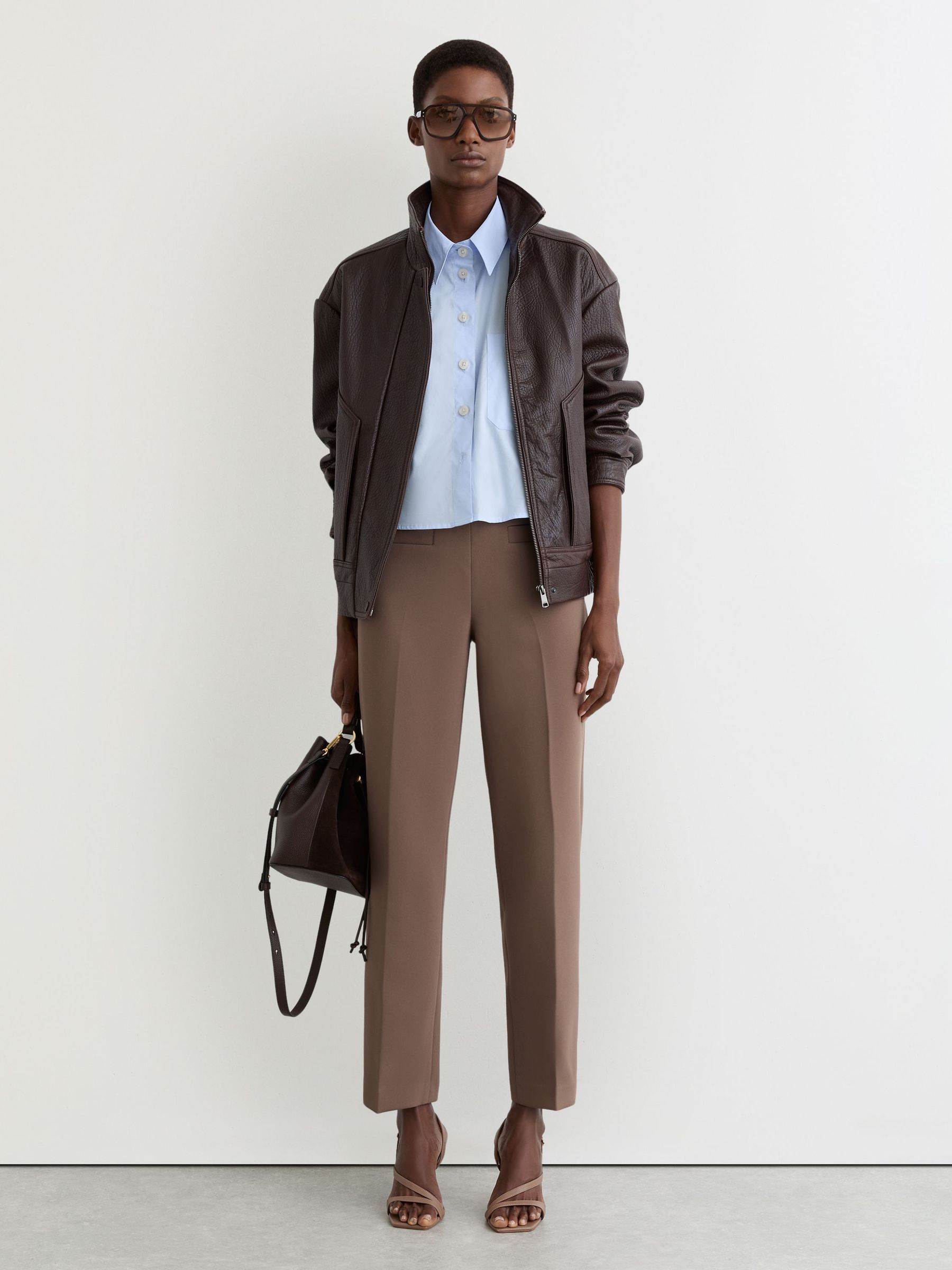 Petite Welt-Pocket Tapered Trousers in Taupe Neutral