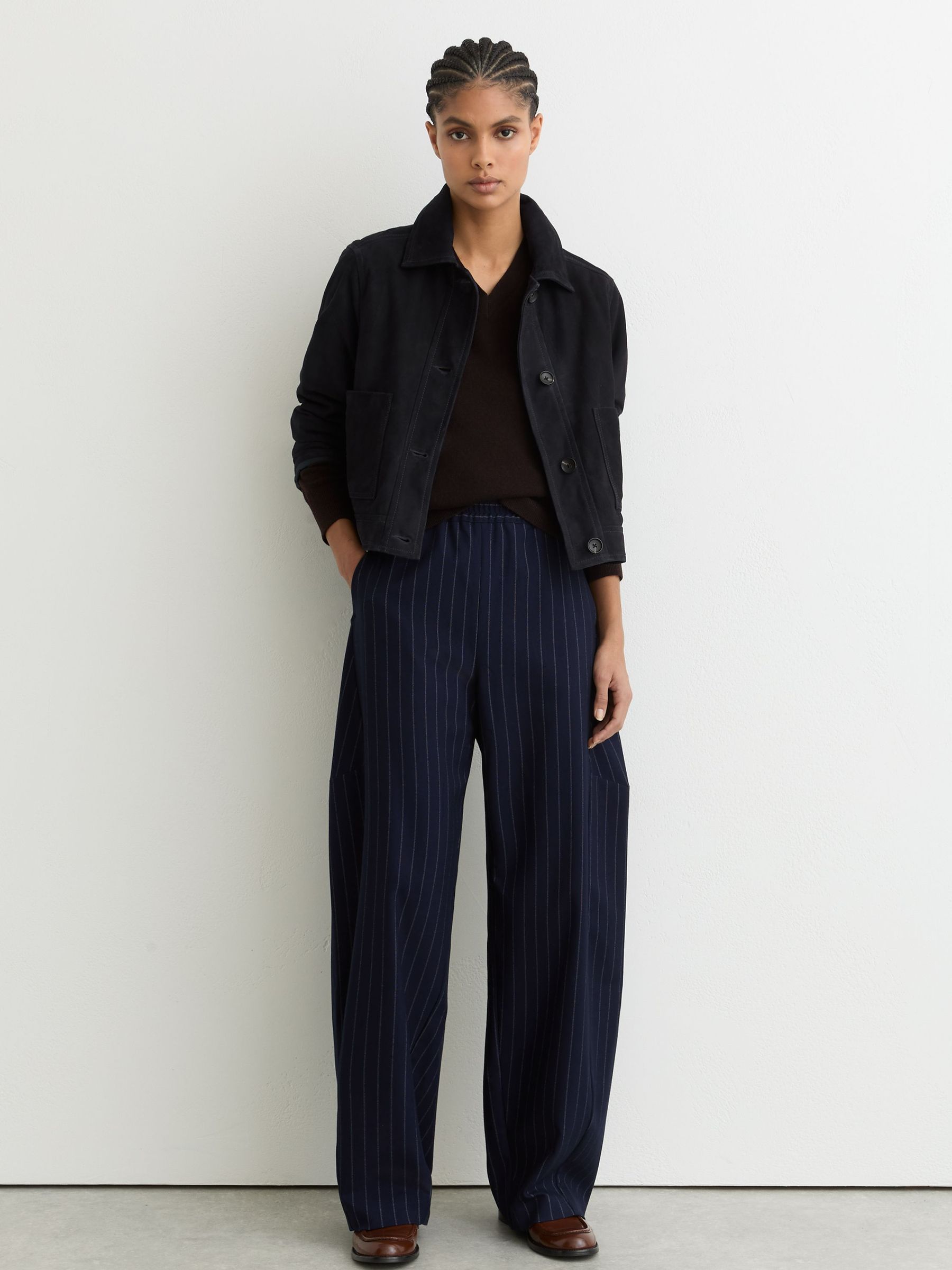 Double-Breasted Blindseam Coat Wool-Blend in Navy