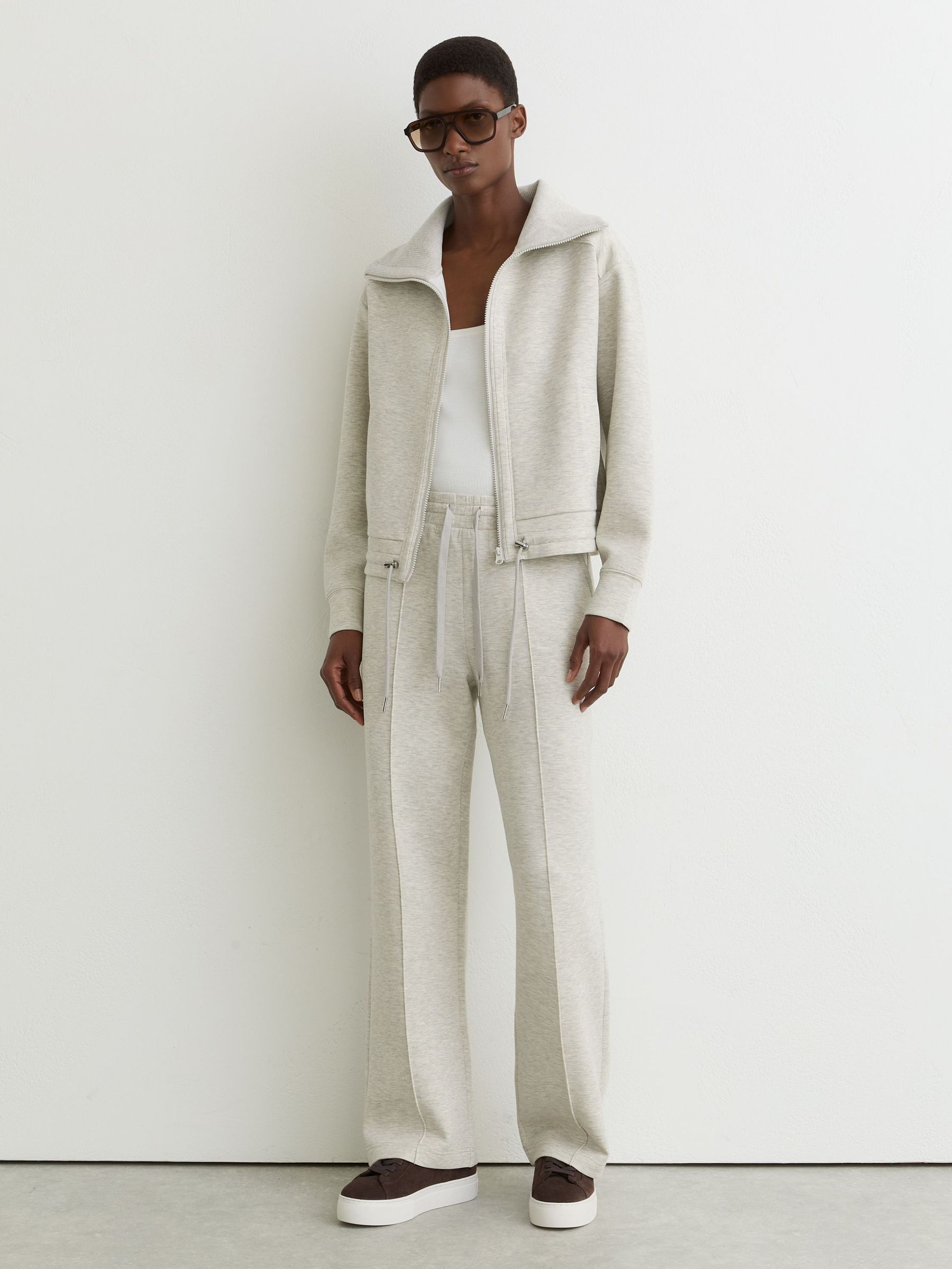 Petite Premium Interlock Wide-Leg Joggers in Grey Marl