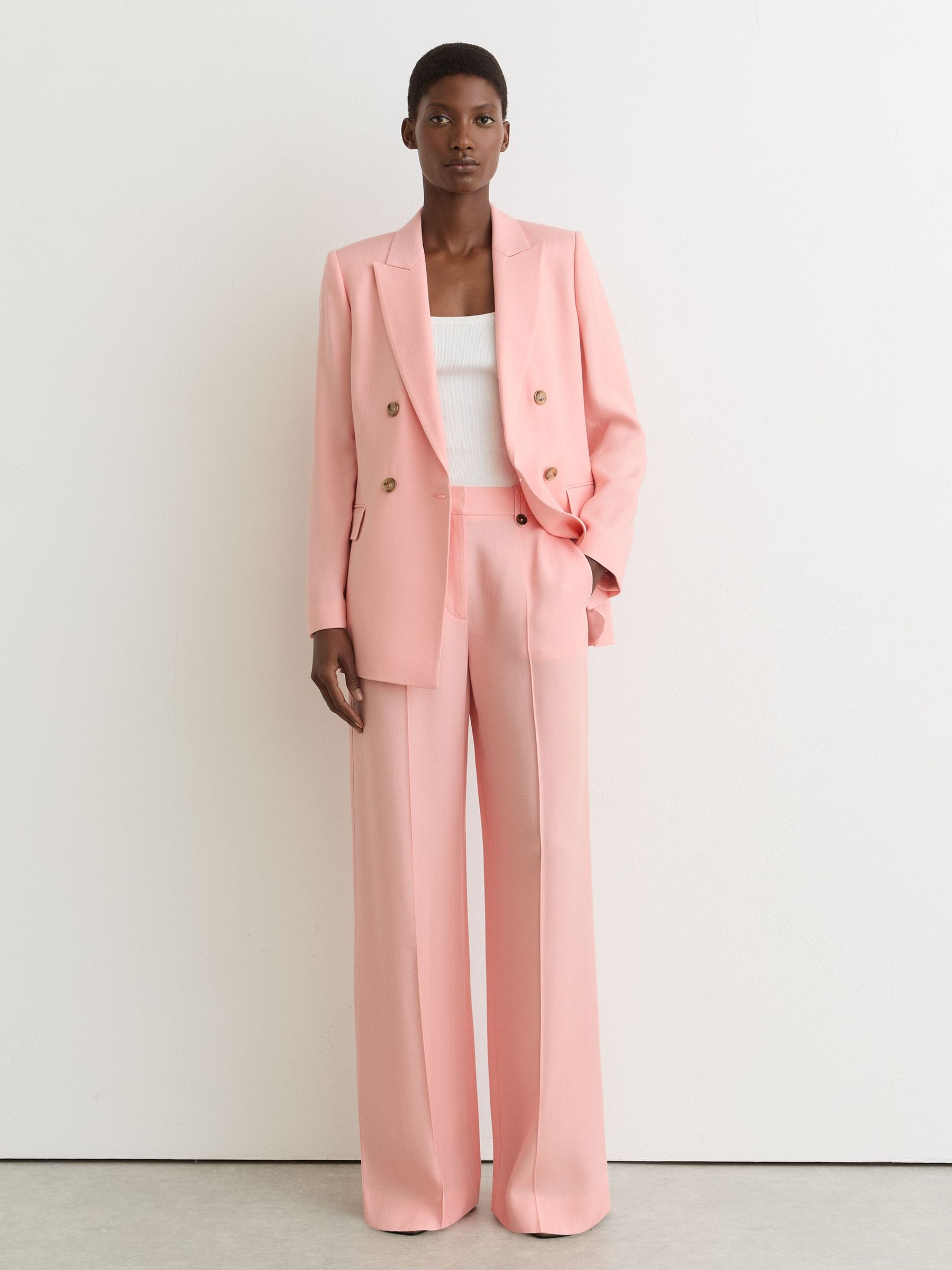 Wide-Leg Tailored Trousers in Pale Pink