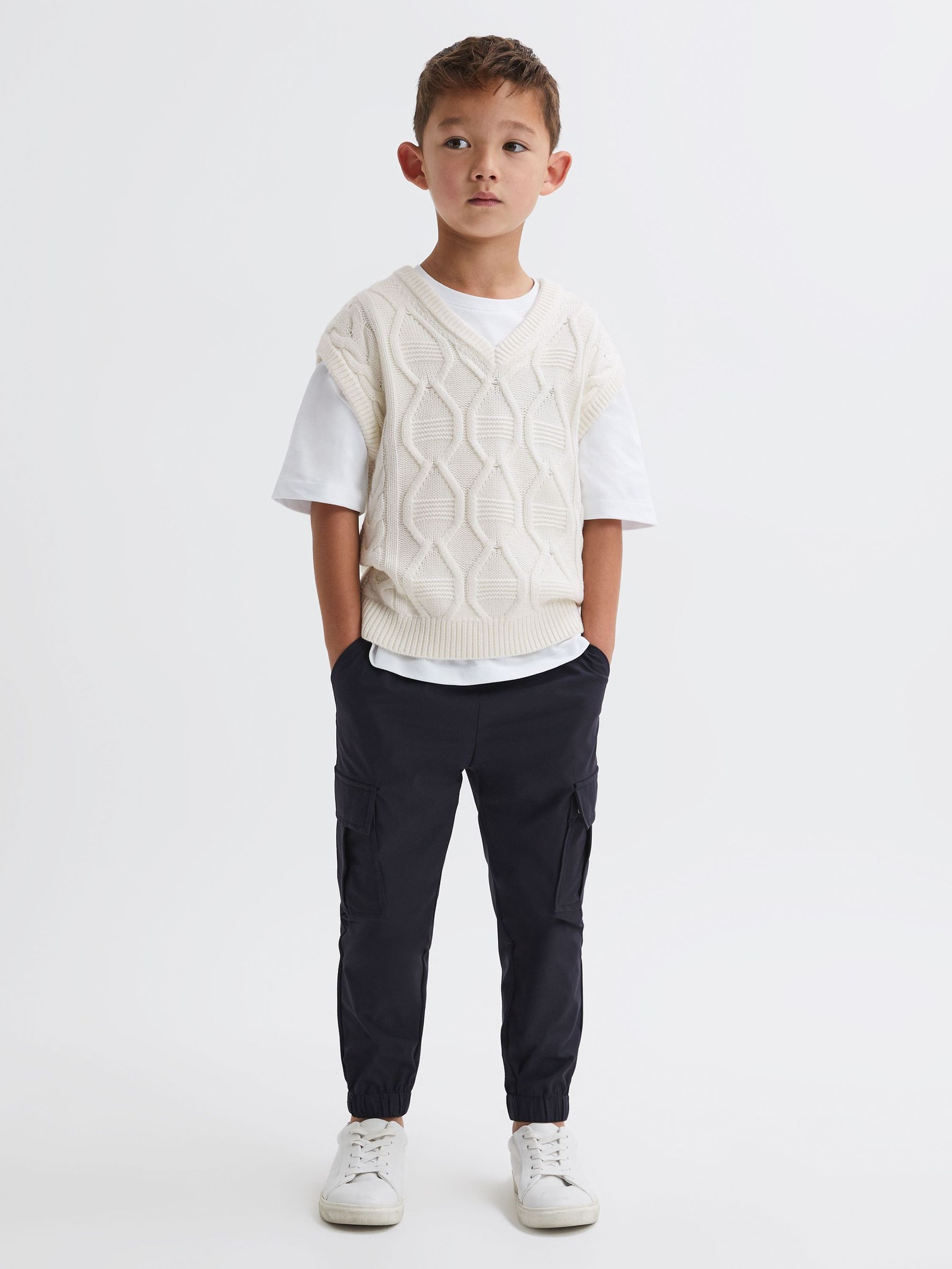 3-9 yrs Slim Fit Cable Knit Sleeveless Vest in Ecru
