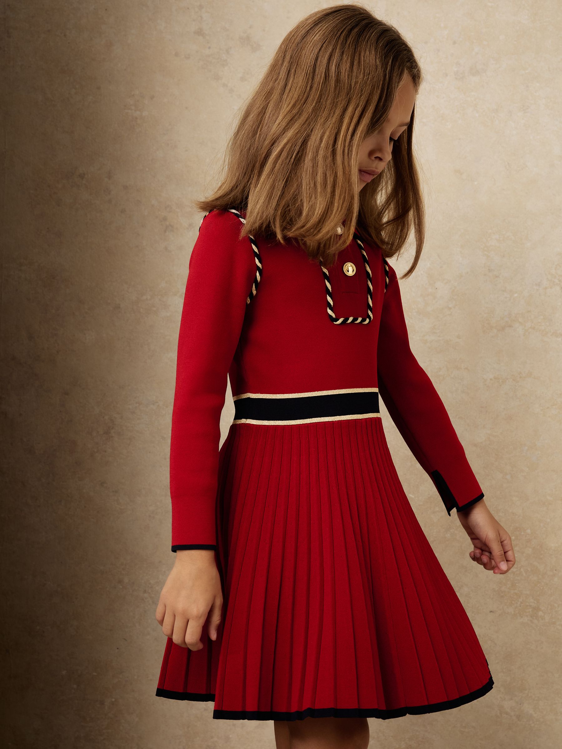 13-14 yrs Colour-Block Knitted Skater Dress in Red