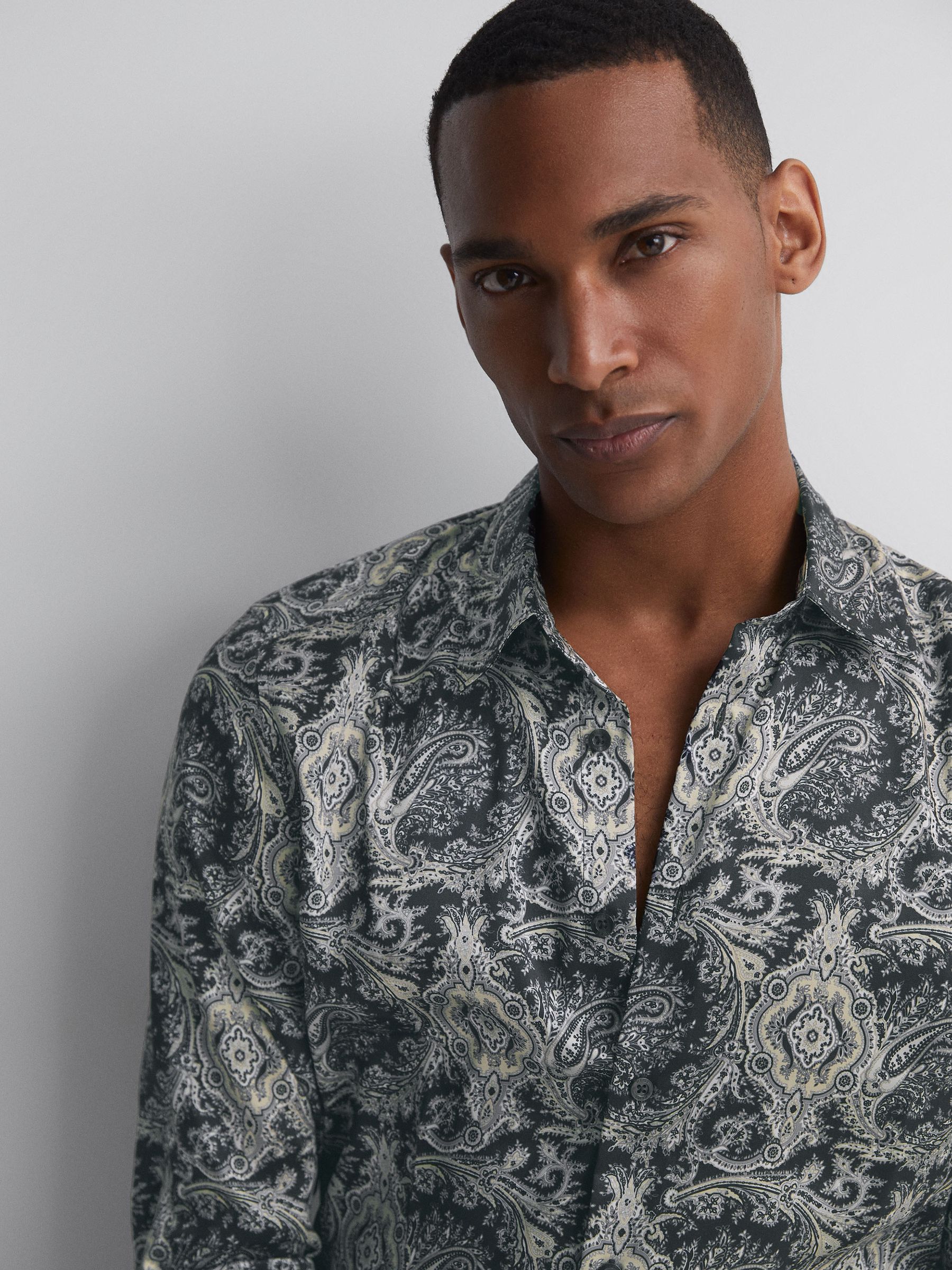 Paisley Print Button-Through Shirt in Black Multi
