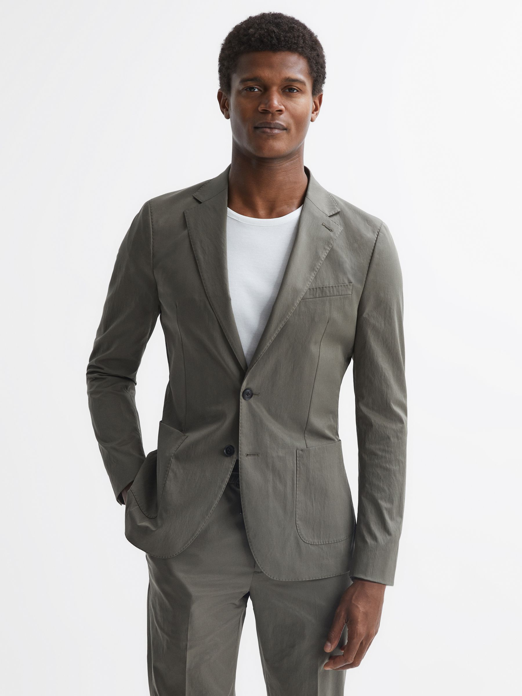 Single Breasted Technical Slim Fit Blazer in Khaki