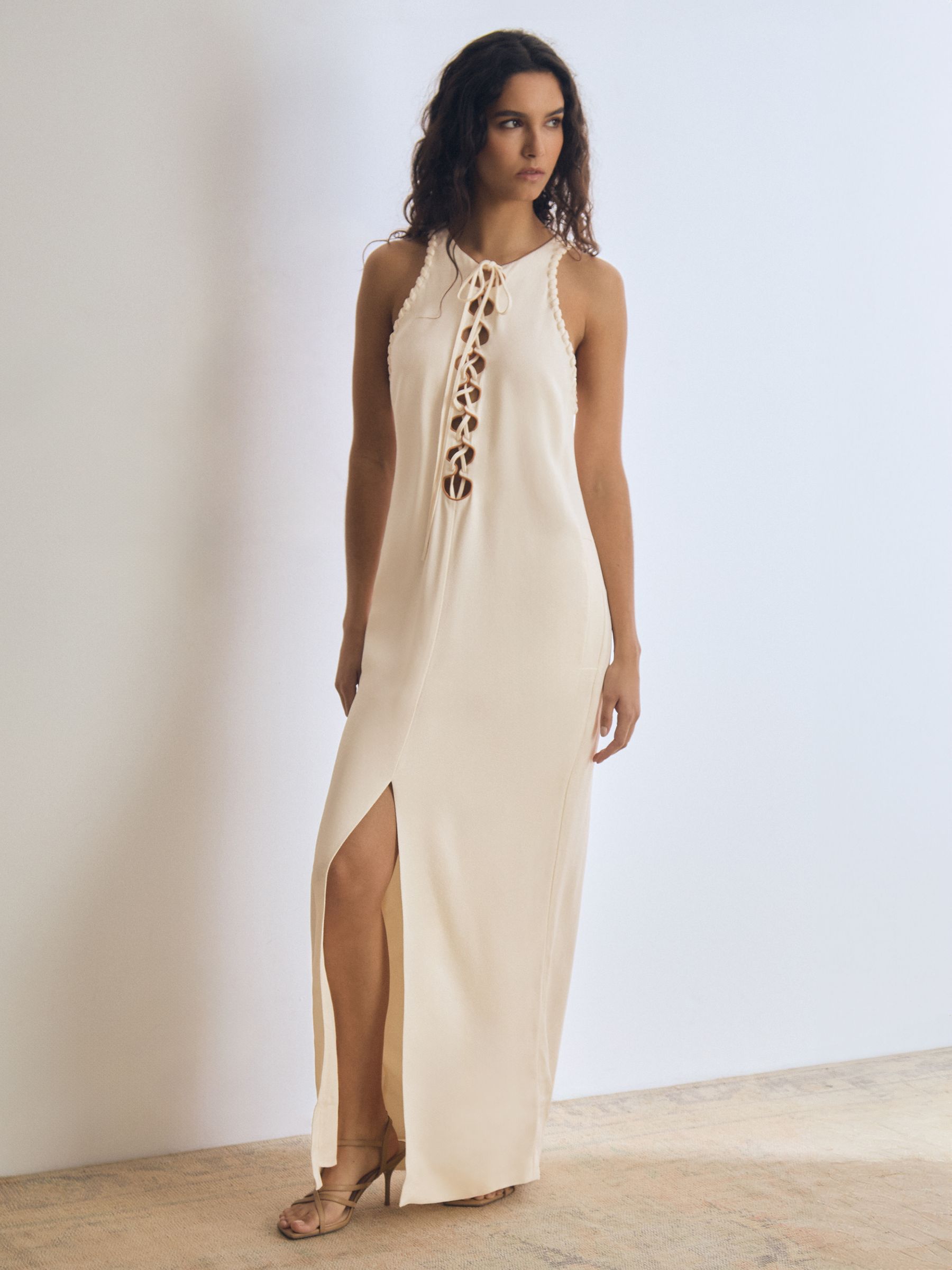 Atelier Satin-Crepe Cut-Out Maxi Dress in Cream