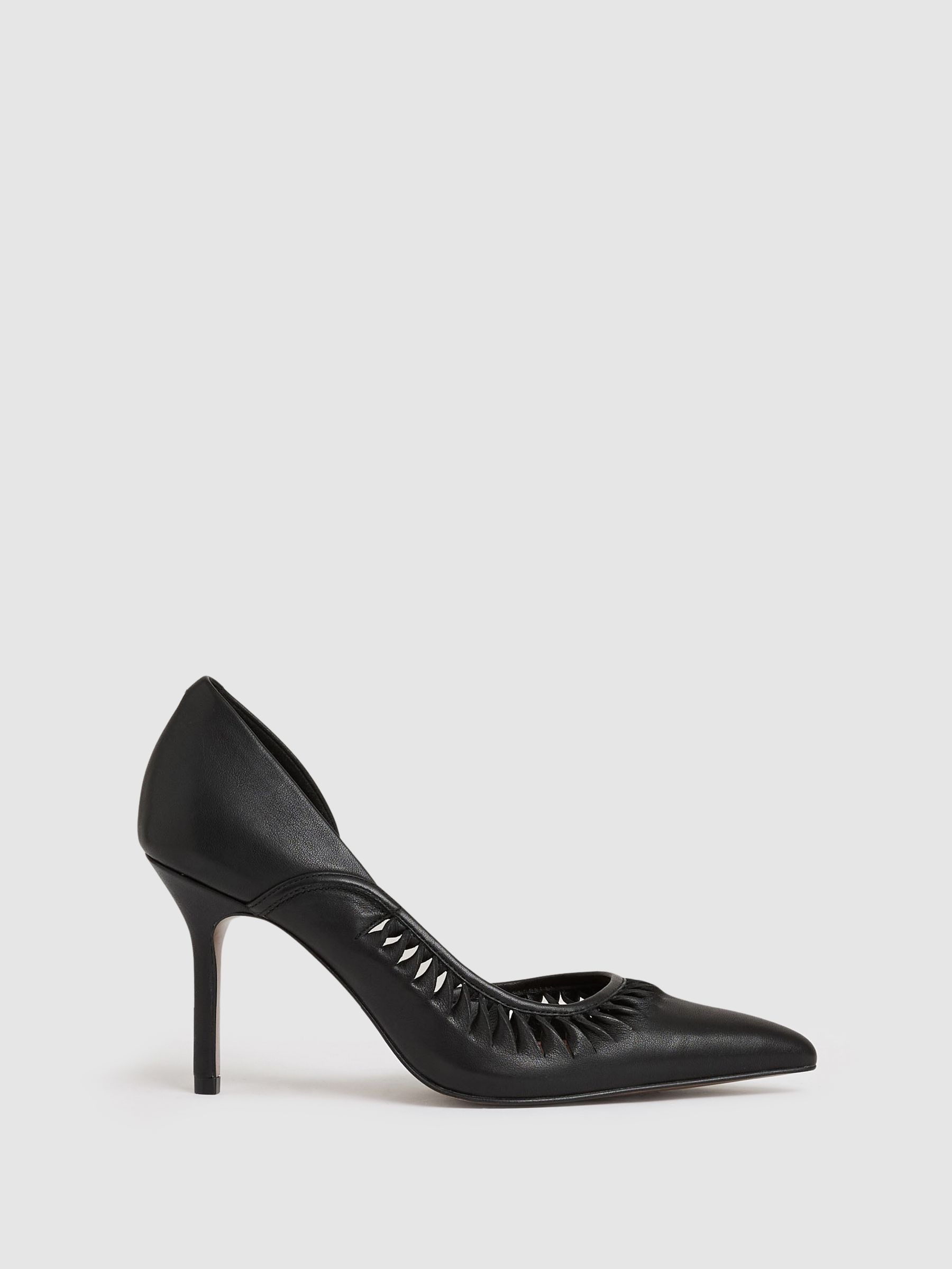 Leather Crocodile-Effect Ankle Boots in Burgundy