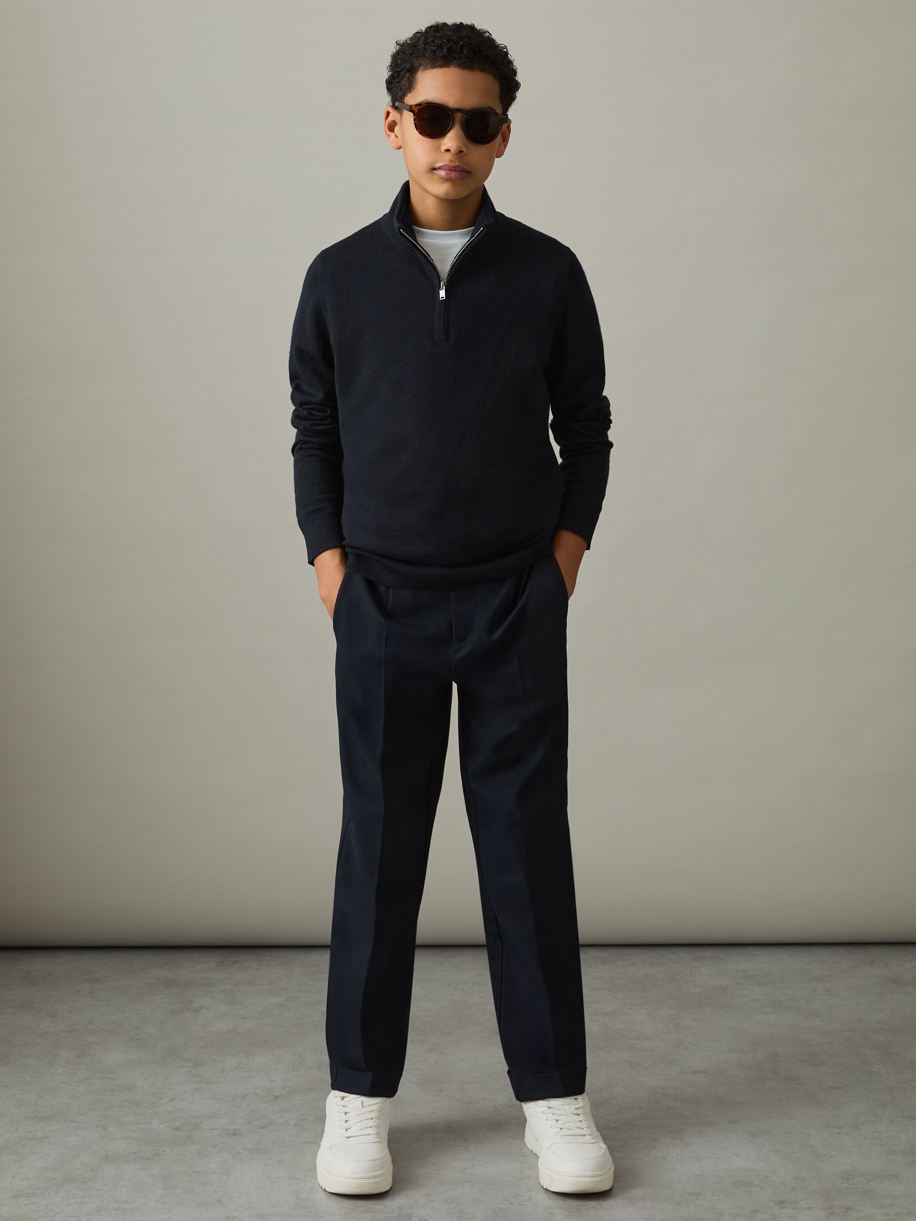 9-13 yrs Two Pack Of Merino Wool Zip-Neck Jumpers in Navy/Dark Bordeaux