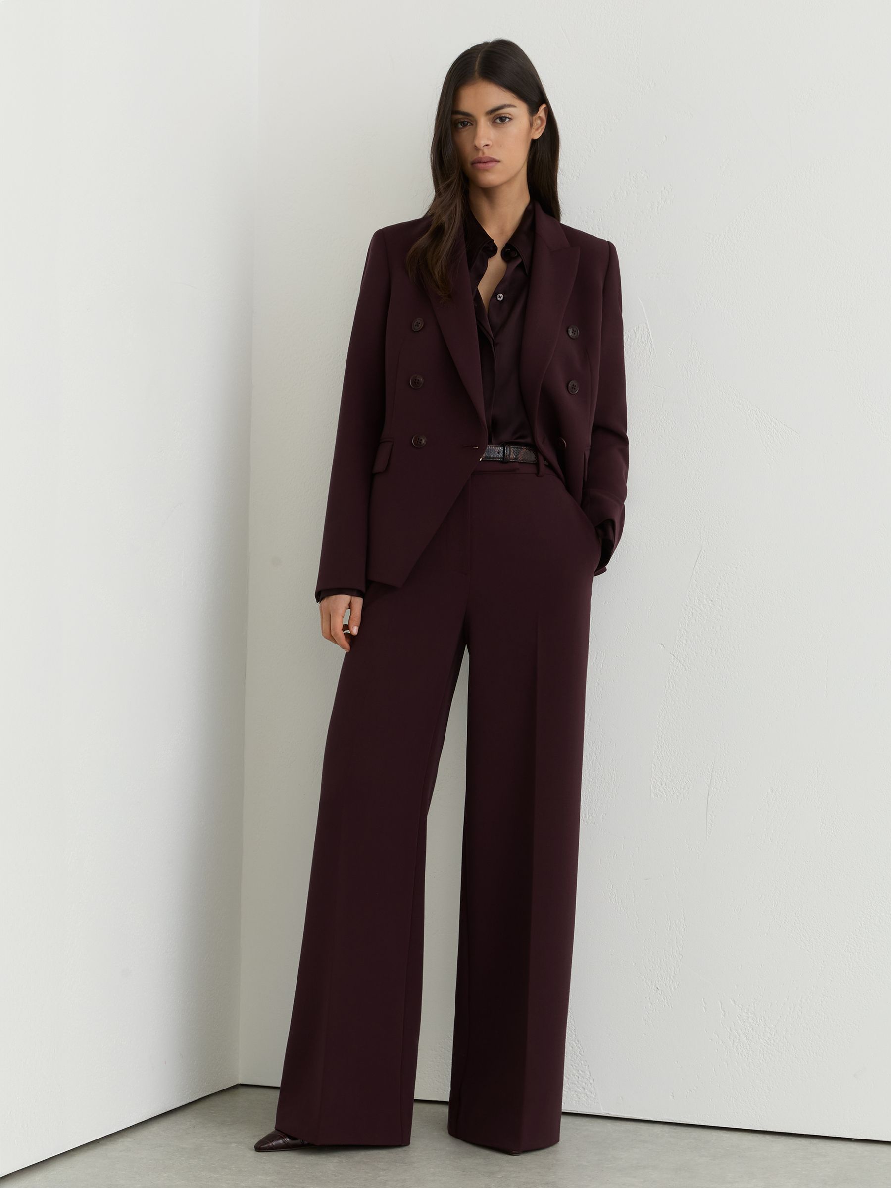 Petite Wide-Leg Suit Trousers in Berry