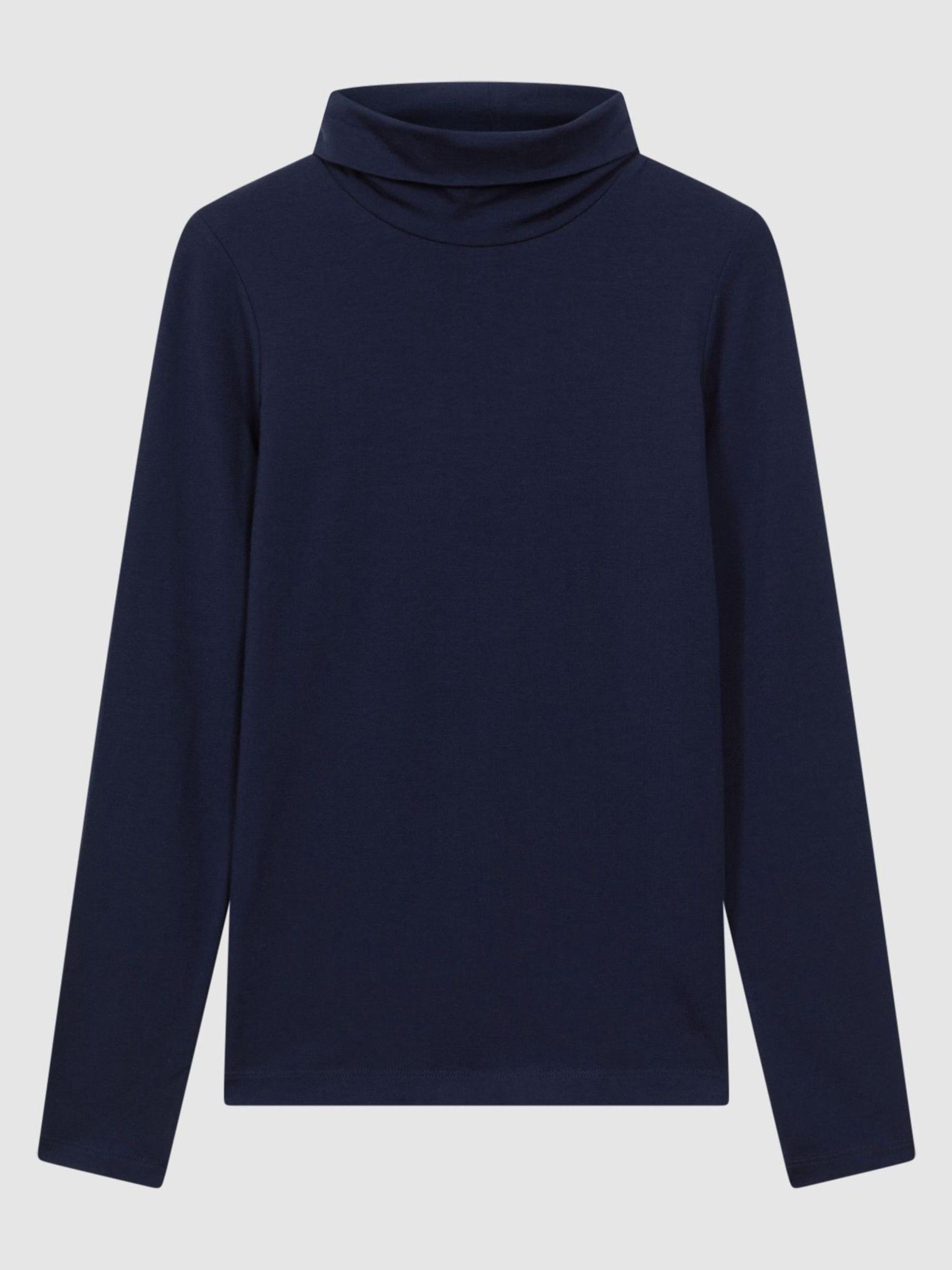 The navy Piper cements its place in your 7-day wardrobe thanks to its soft modal blend and high-stretch, fitted silhouette. A rolled neckline is added, perfect for your trans-seasonal edits. Style alone or layer under a range of shirts and knitwear to maximise the potential of this option. Rolled neckline Long sleeves Fitted The model is wearing a size S. Measurements of model: Height 5ft 9'' / 175cm.