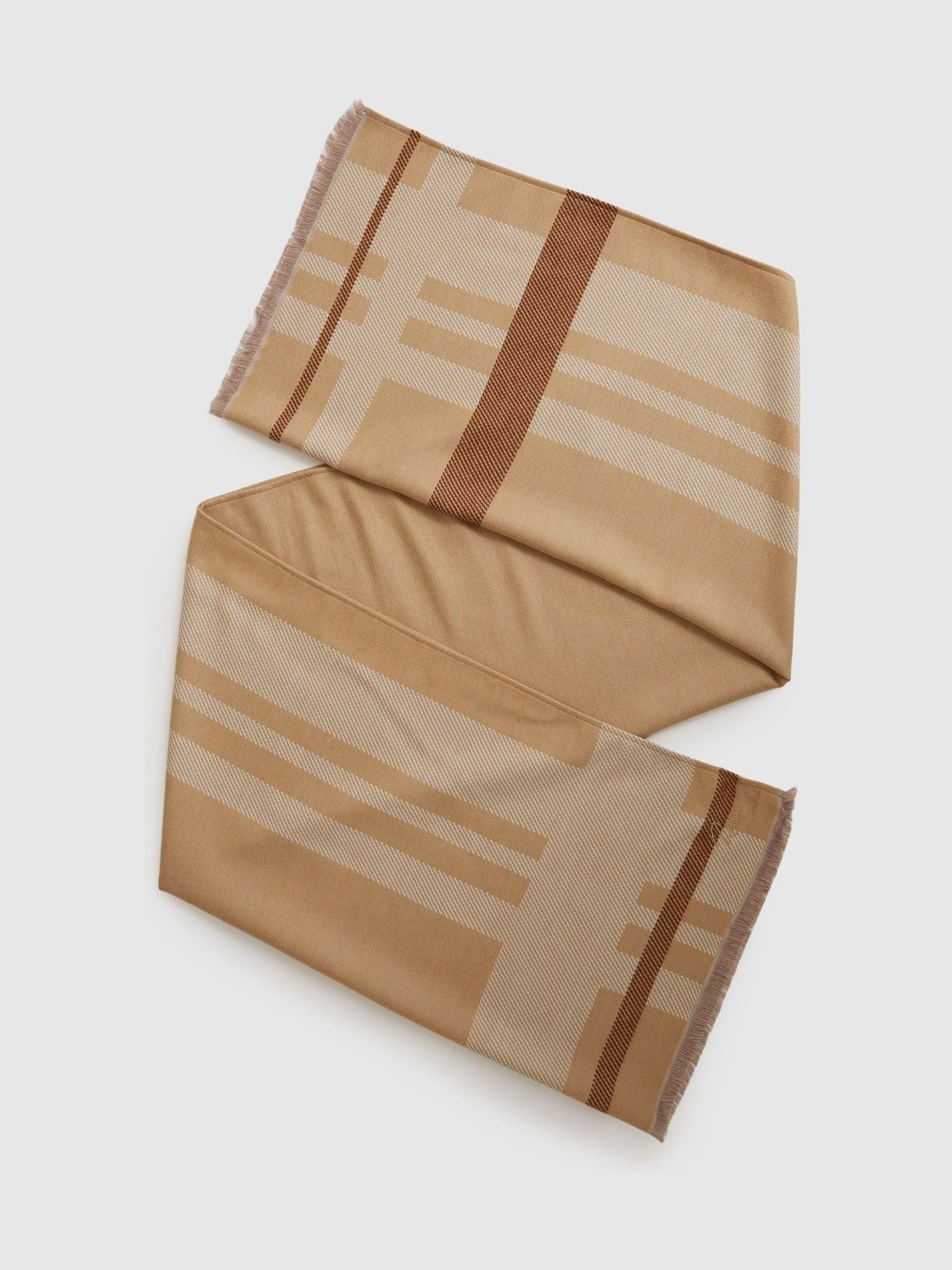 Complete cool-weather looks with the Camel Cara scarf. It’s woven with timeless checks, then accented with an embroidered Reiss Bloom logo and eyelash-fringed edges. Checked pattern Embroidered logo Fringed edges Length 180cm Width 70cm