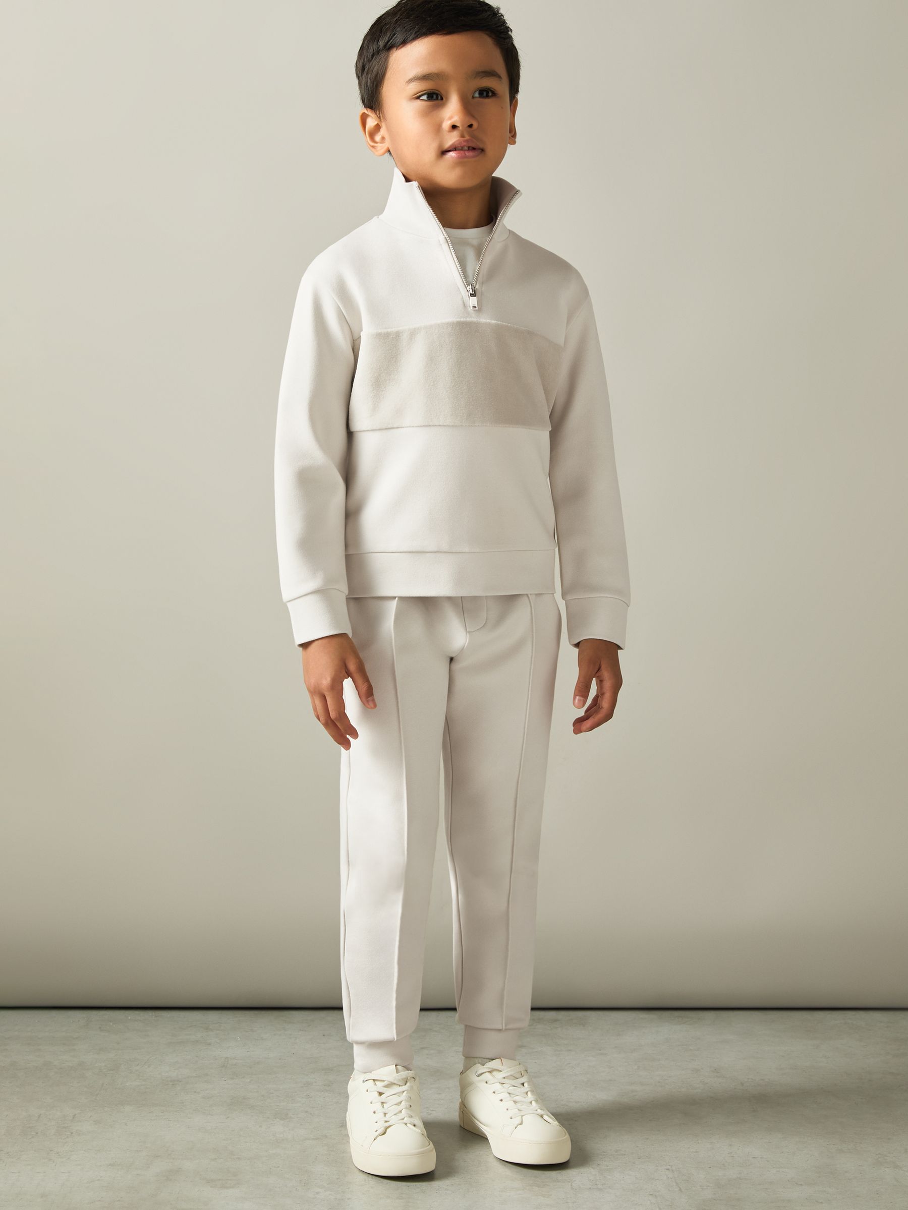 9-13 yrs Slim Fit Half-Zip Funnel Neck Velour Sweatshirt in Taupe