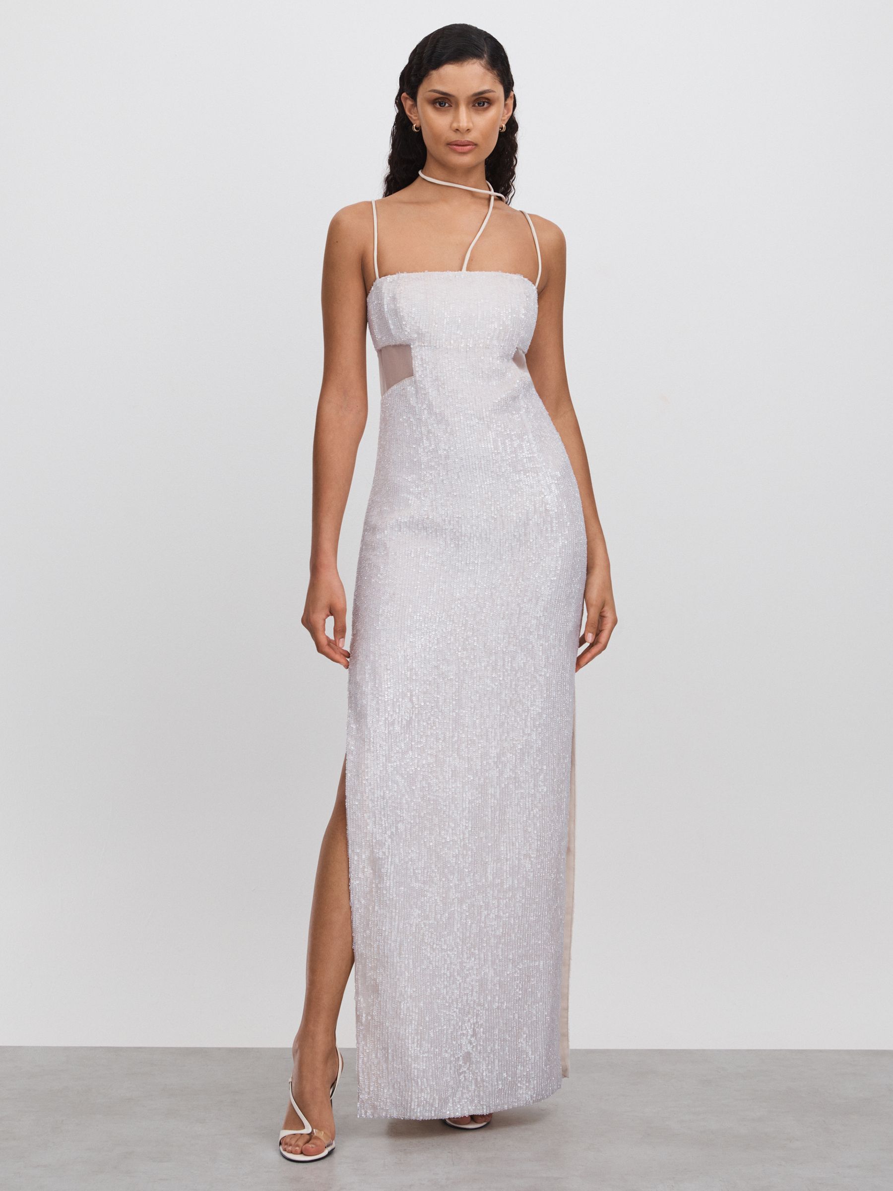 Rachel Gilbert Sequin Cut Out Maxi Dress in White