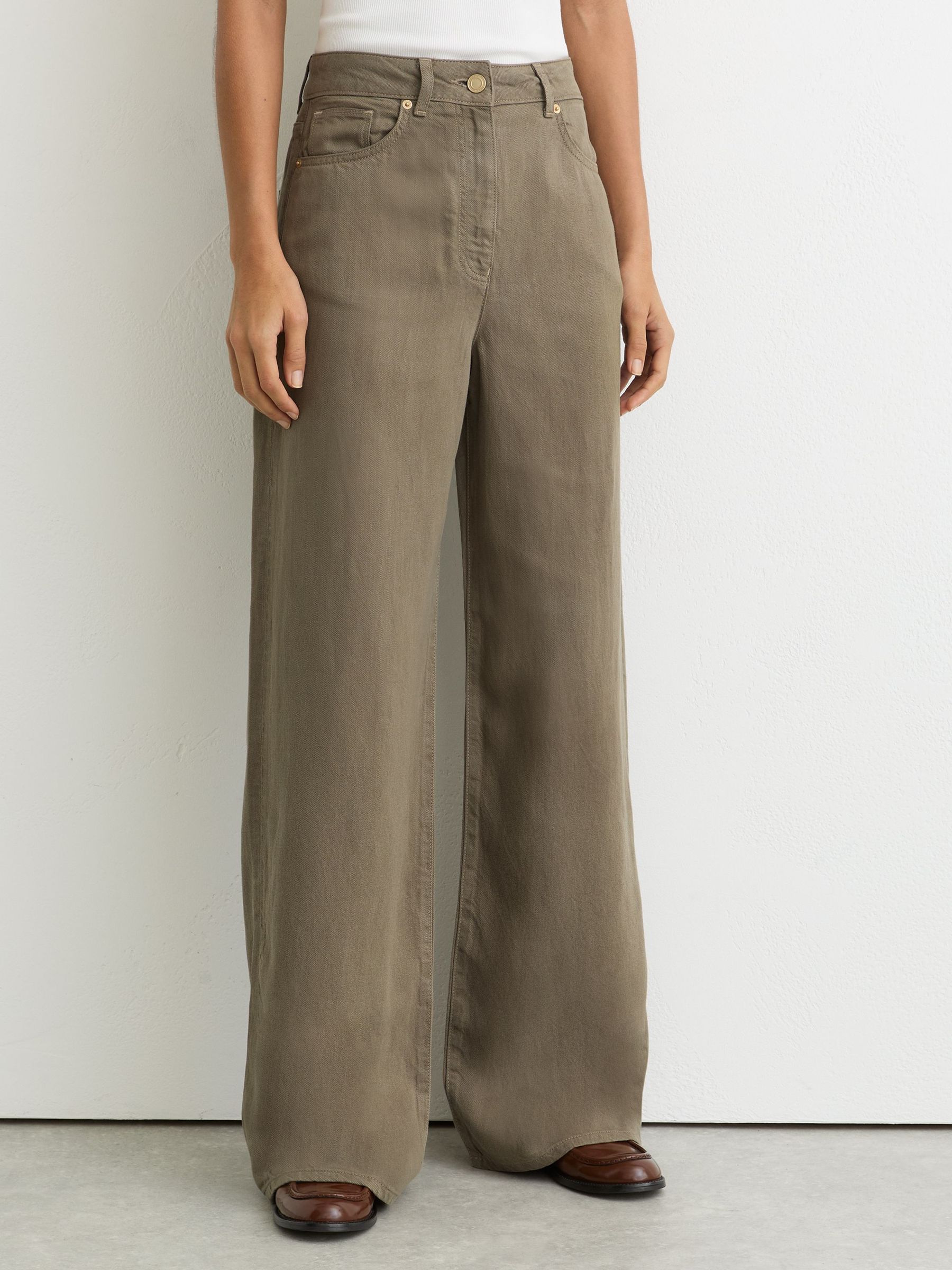 Petite Lyocell-Linen Wide-Leg Trousers in Khaki Green