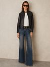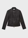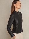 6.12.1 Leather Collarless Biker Jacket in Black | REISS USA Click here to use our website with more accessibility support, for example screen readers