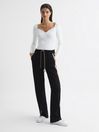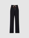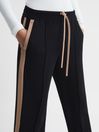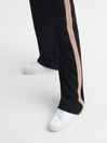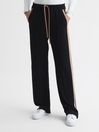 The Frazer trousers are crafted from a contemporary fabrication for a comfortable yet stylish finish. They are cut into a wide-leg silhouette and finished with a sportswear-inspired contrast side stripe. Simply pair with knitwear and sneakers for coffee dates or tuck in a shirt and add heels for an elevated edit. Contrast side stripe. High waisted. Drawcord waistband. Wide leg. This piece is made with recycled polyester yarn, a REISS initiative to make garments more sustainable. The model is wearing a size 8. Measurements of model: Height 5ft 10 / 178cm, Chest 32" / 81 cm, Waist 24" / 61cm.