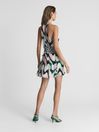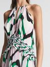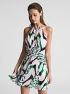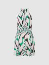 The Belle dress is crafted in a lightweight, flowing fabrication that's easy to wear on warm vacation days. It's cut into a halterneck design with a slit to the chest and fabric detailing to the midriff. Pair this mini dress with sandals for the daytime and barely-there heels for evening edits. Halterneck. Sleeveless. Slit to neckline. Fabric detail to midriff. Printed design. Mini length. The model is wearing a size 8. Measurements of model: Height 5ft 10" / 178cm, Chest 32" / 81 cm, Waist 24" / 61cm.