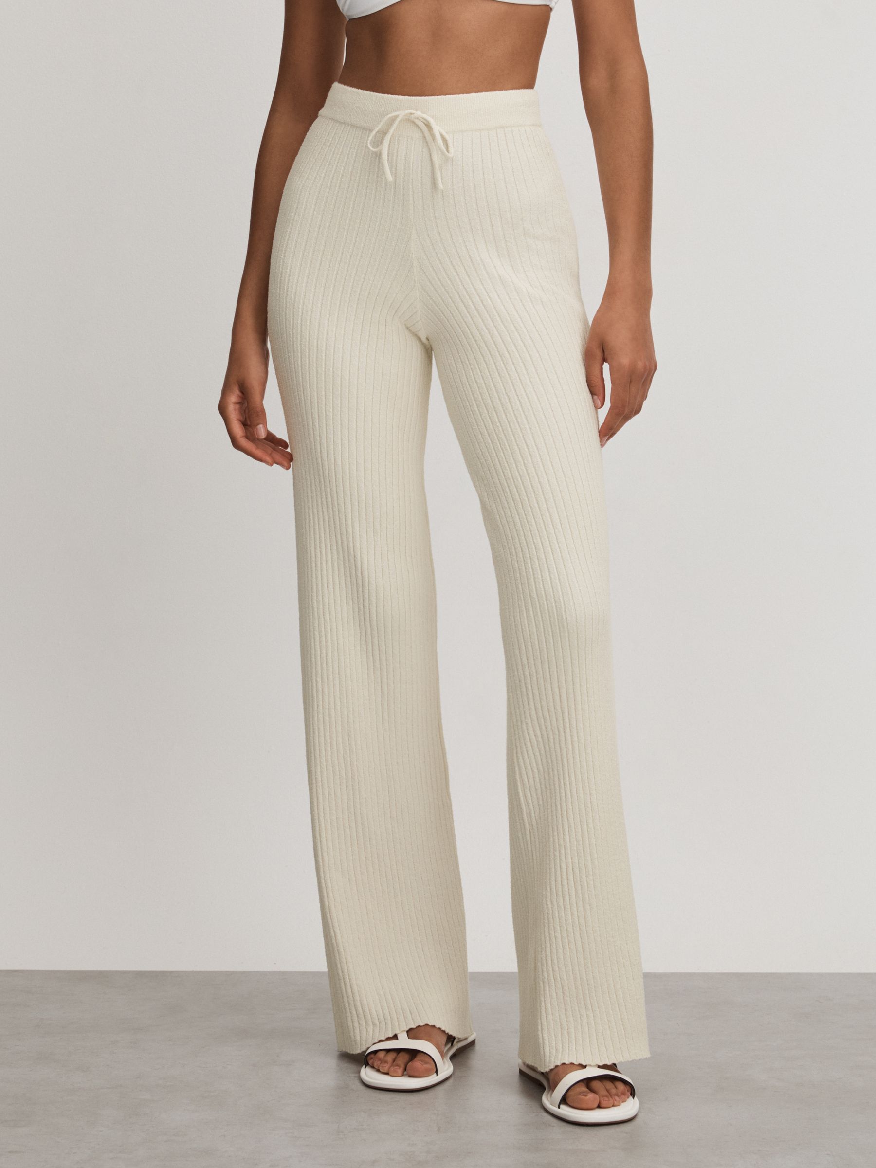 Good American Cloud White Ribbed Terry Lounge Trousers
